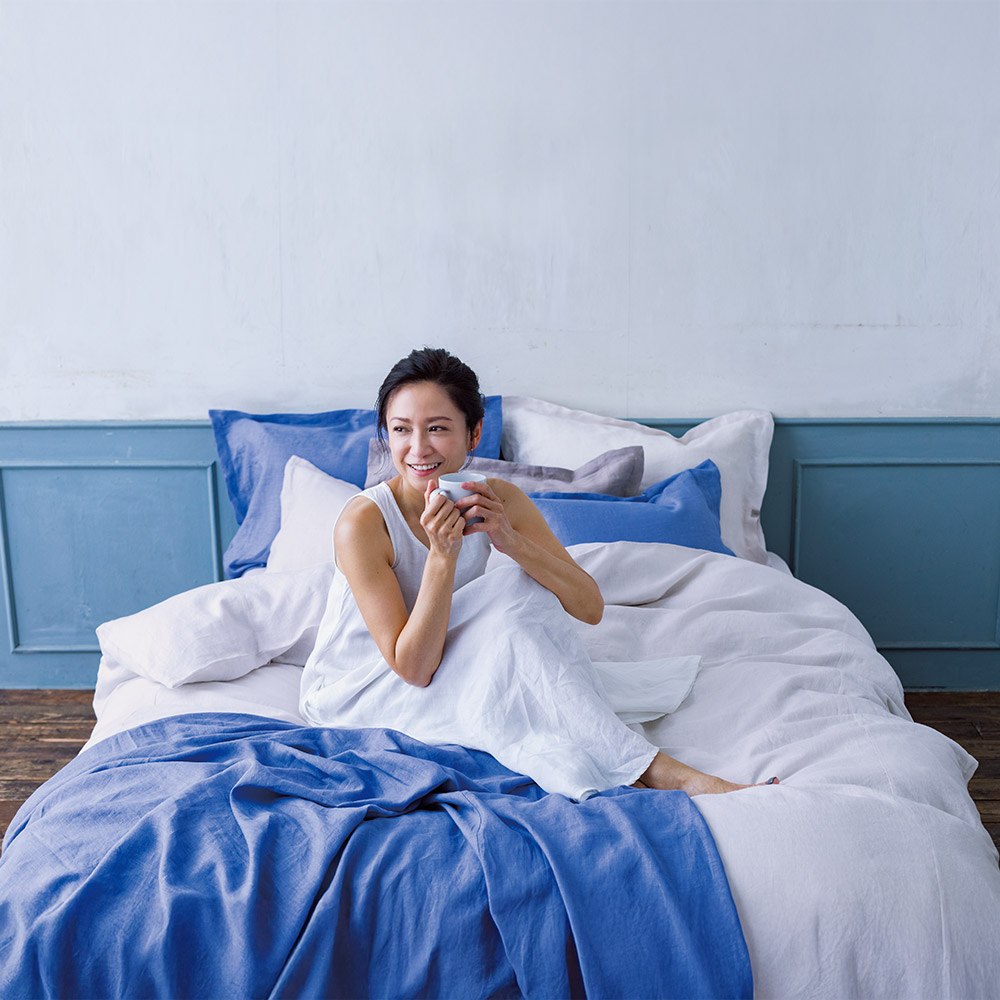 美しいルックスと上質な肌ざわりのシーツは、ソファにさらりと掛けるなどリビング使いもおすすめです。