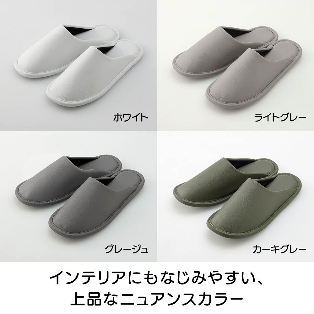 上品シンプルな レザー調ゲストスリッパ 4足(4色)組 スリッパ ルームシューズ タオル 622202