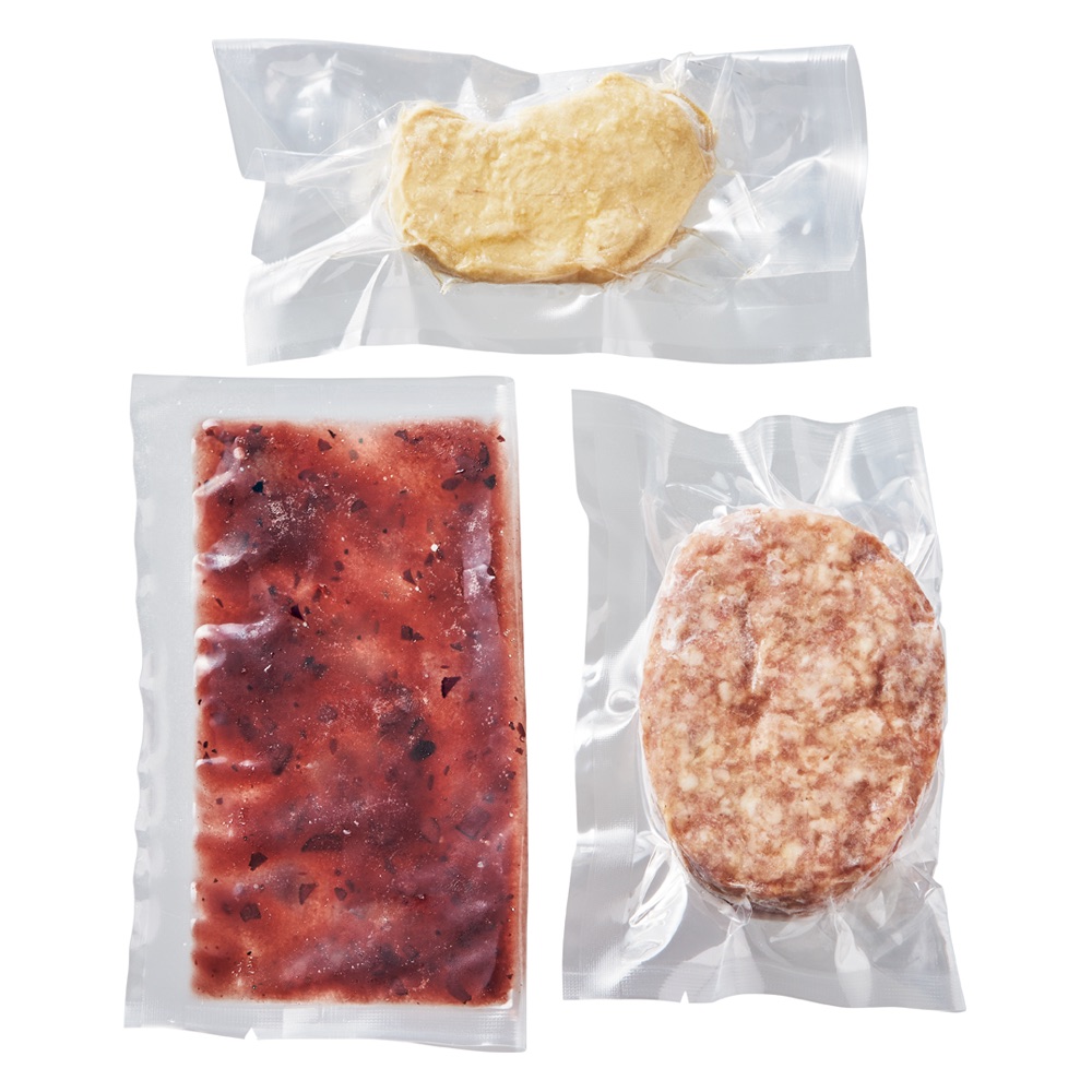 ■お召し上がり方:冷蔵庫で解凍したハンバーグを中火で約5分ほど蓋をして蒸し焼きにし、ひっくり返して蓋をして約4分焼く。フォアグラも冷蔵解凍し、中火で40秒、ひっくり返して蓋をして火を消して、余熱で約60秒焼く。ソースは湯煎解凍。