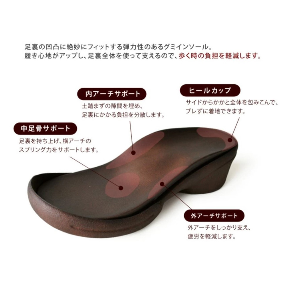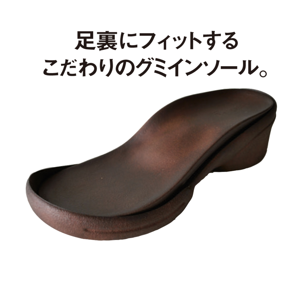 2005年、大阪生野区で生まれたコンフォートシューズブランド。日本の伝統的な履物である下駄の機能性に注目し、これを硬いアスファルトを歩く現代人にフィットするよう再設計。履き心地を追求しながらも、ドイツ靴の機能性やイタリア靴の洗練されたデザインエッセンスを取り入れ、おしゃれで歩きやすい靴作りを目指しています。