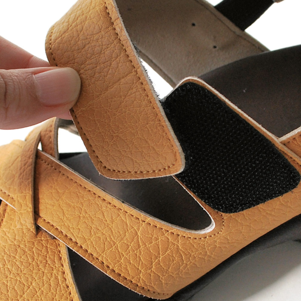・甲ベルトは面テープで脱ぎ履きしやすく、自分の足にフィットし窮屈感やスレも軽減。