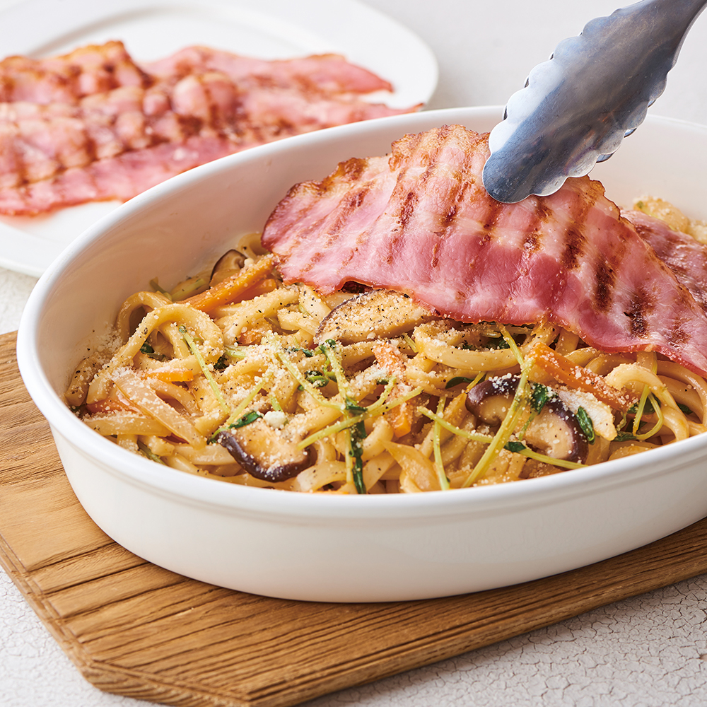 カリカリベーコン焼うどん(ディノス限定レシピ掲載)