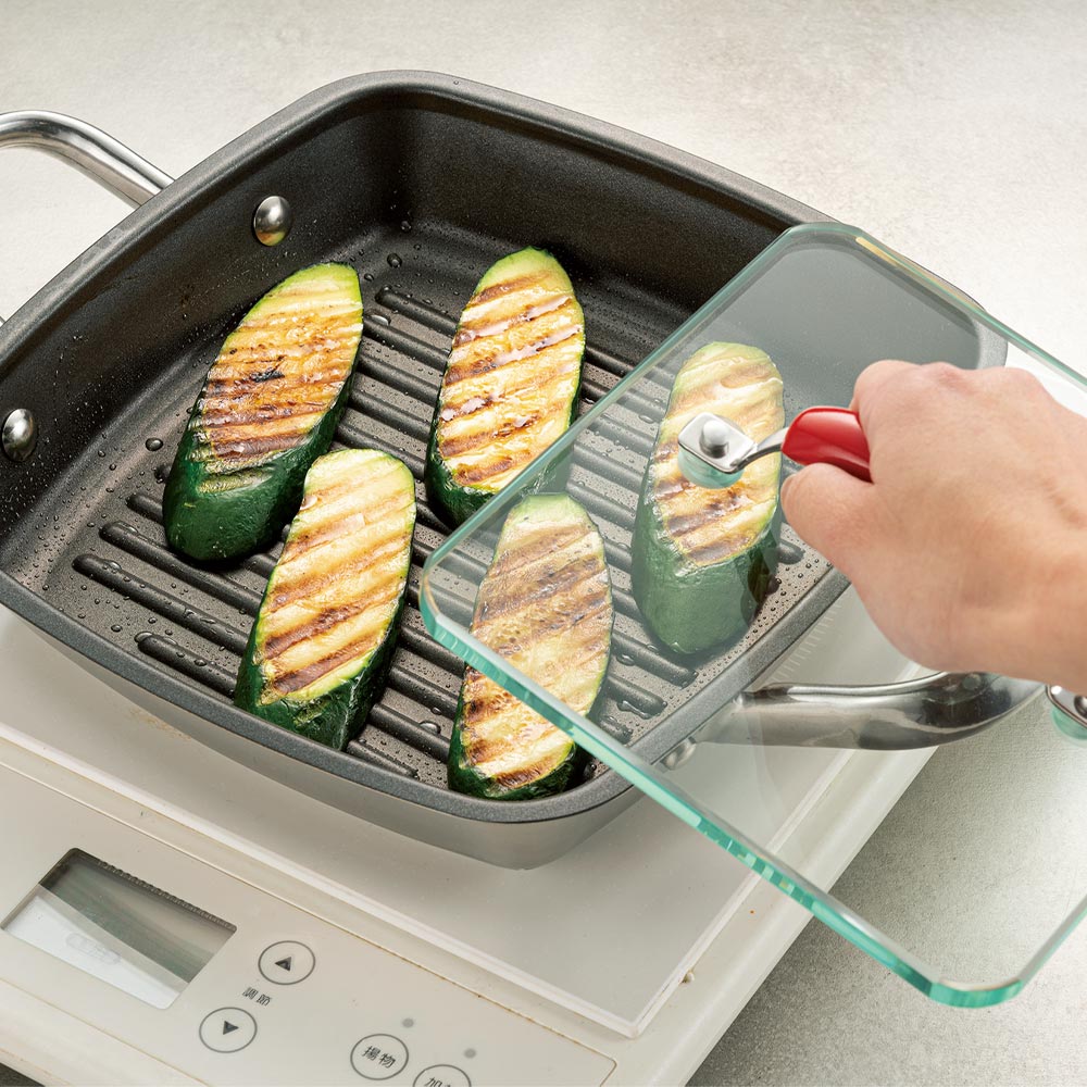 ・スクエアグリルパン用ガラスふた…強化ガラス、ステンレス
