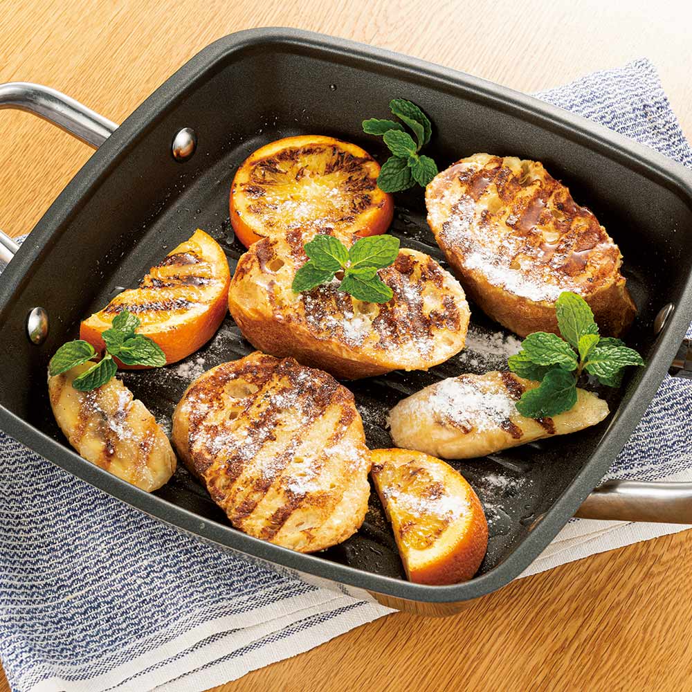 実は魚や野菜も美味しく焼けるんです。旬の野菜をグリルパンで調理すればご馳走に。フレンチトーストもおすすめ!