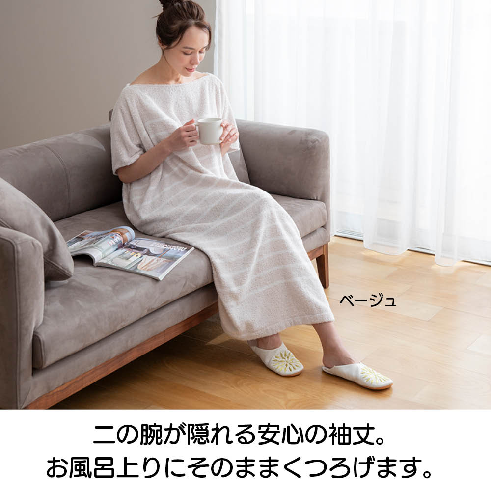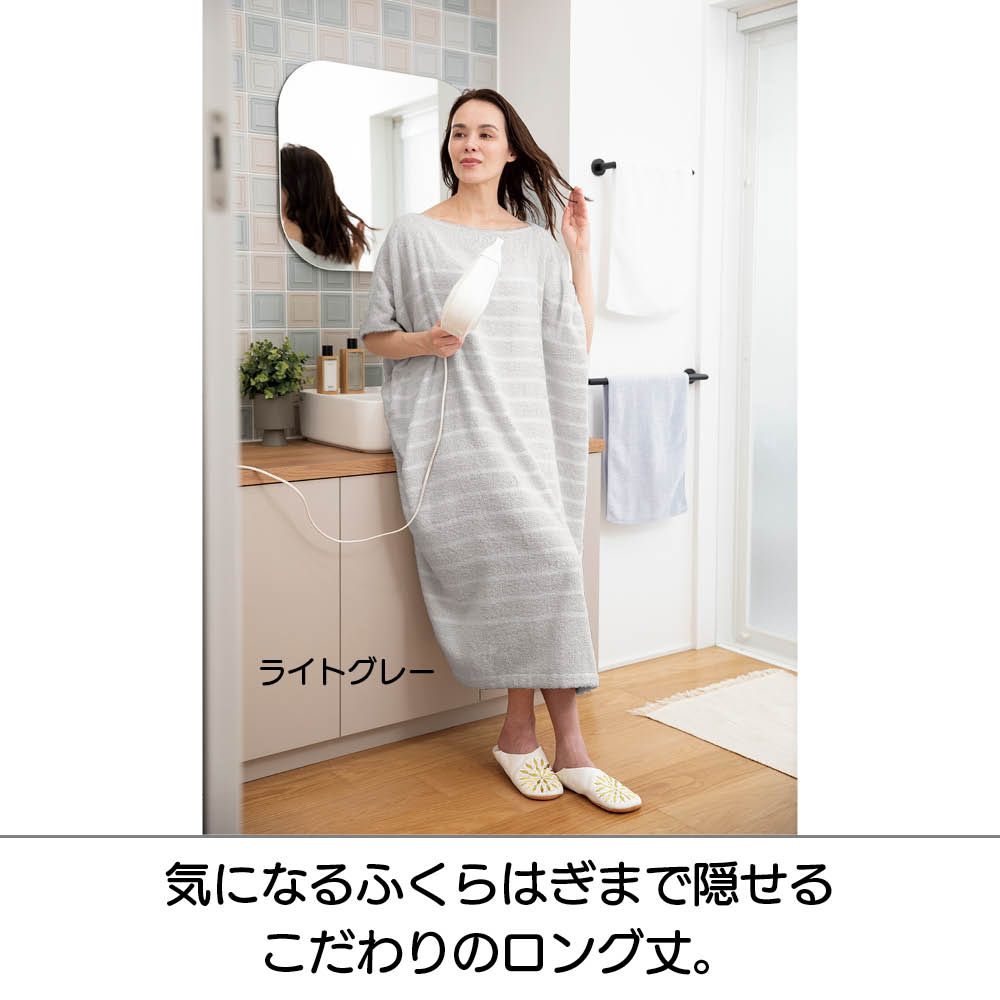 気になる二の腕・ふくらはぎまでカバー!今治タオルでつくったタオルワンピース。(グレー)