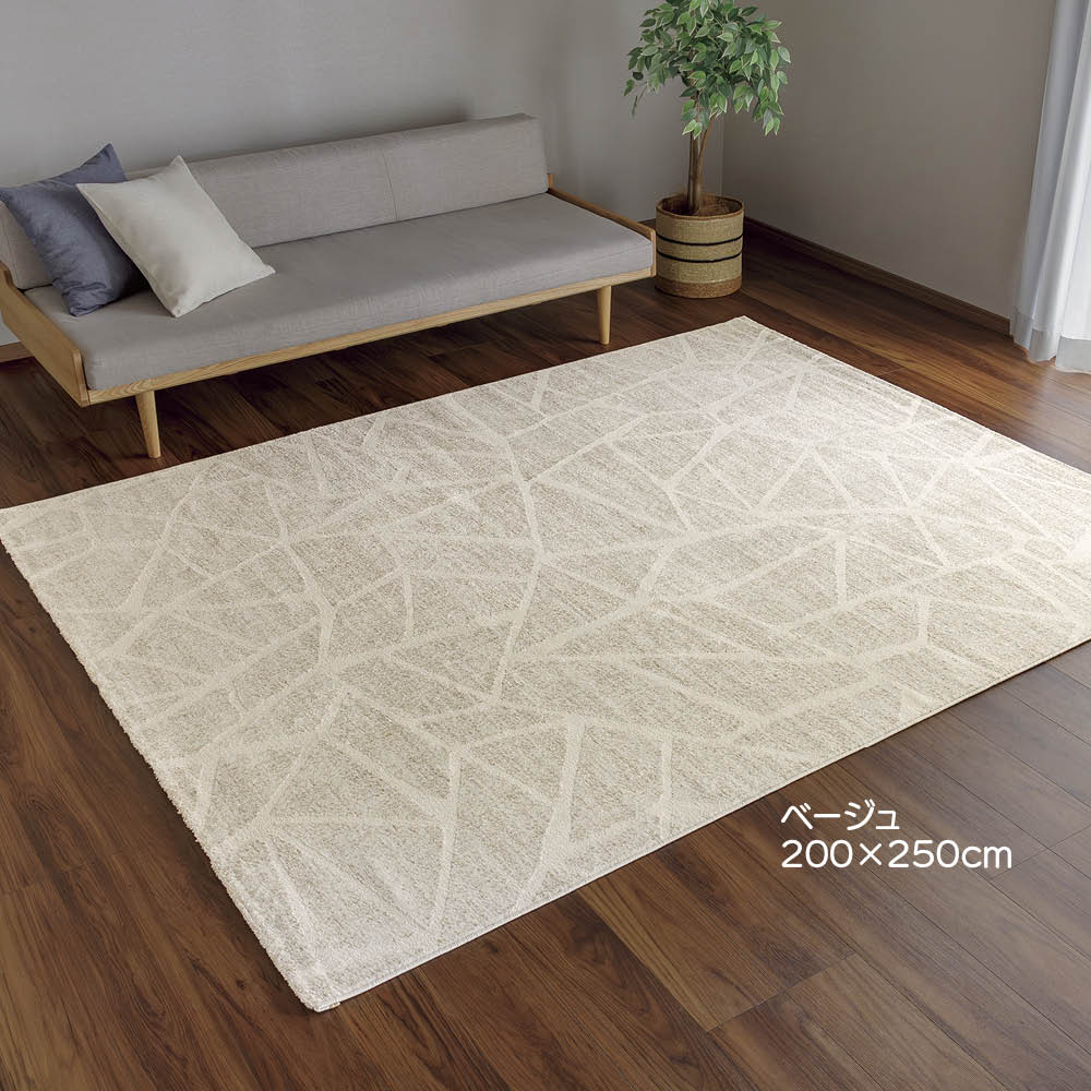 3サイズ展開で、200×250cm(写真)は存在感たっぷり。敷くだけでインテリアの主役にもなり、お部屋全体を上品に彩ります。