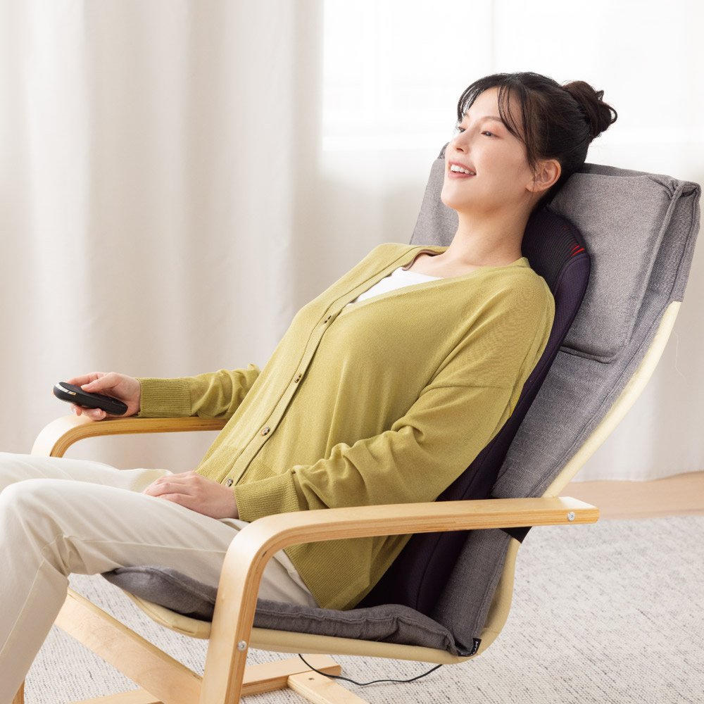 人気のガン型マッサージ機を、シート型に落とし込んだ「シートマッサージガン(R)」。自力だと難しい背中や腰まで、まるで誰かに後ろから手伝ってもらっているかのように、一気にパワフルに刺激します。振動の爽快感×揉みの気持ち良さを一気に
