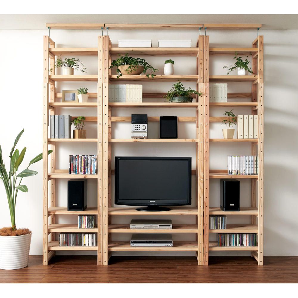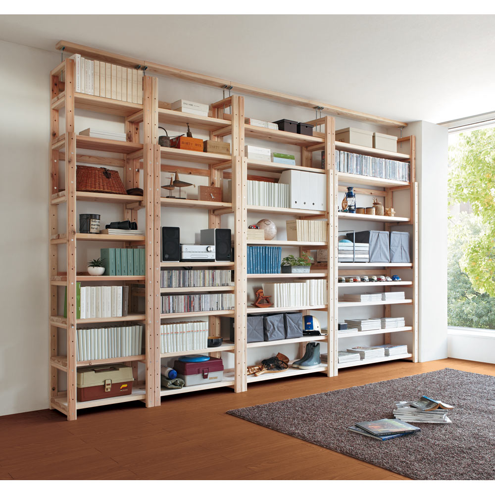国産杉頑丈突っ張りラック(本棚) 幅119cm奥行22cm 突っ張り収納 ラック 本棚 シェルフ 588604
