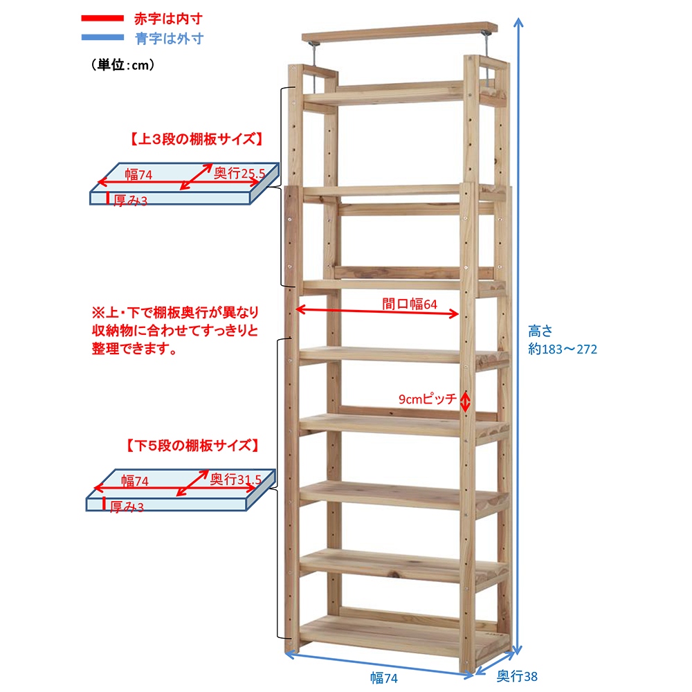■サイズ:幅74奥行38天井対応高さ183~272cm