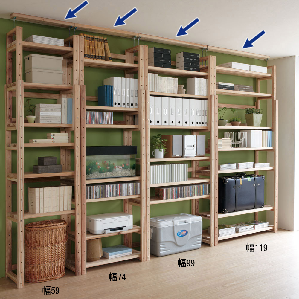国産杉頑丈突っ張りラック(本棚) 幅99奥行38cm 突っ張り収納 ラック 本棚 シェルフ 588611
