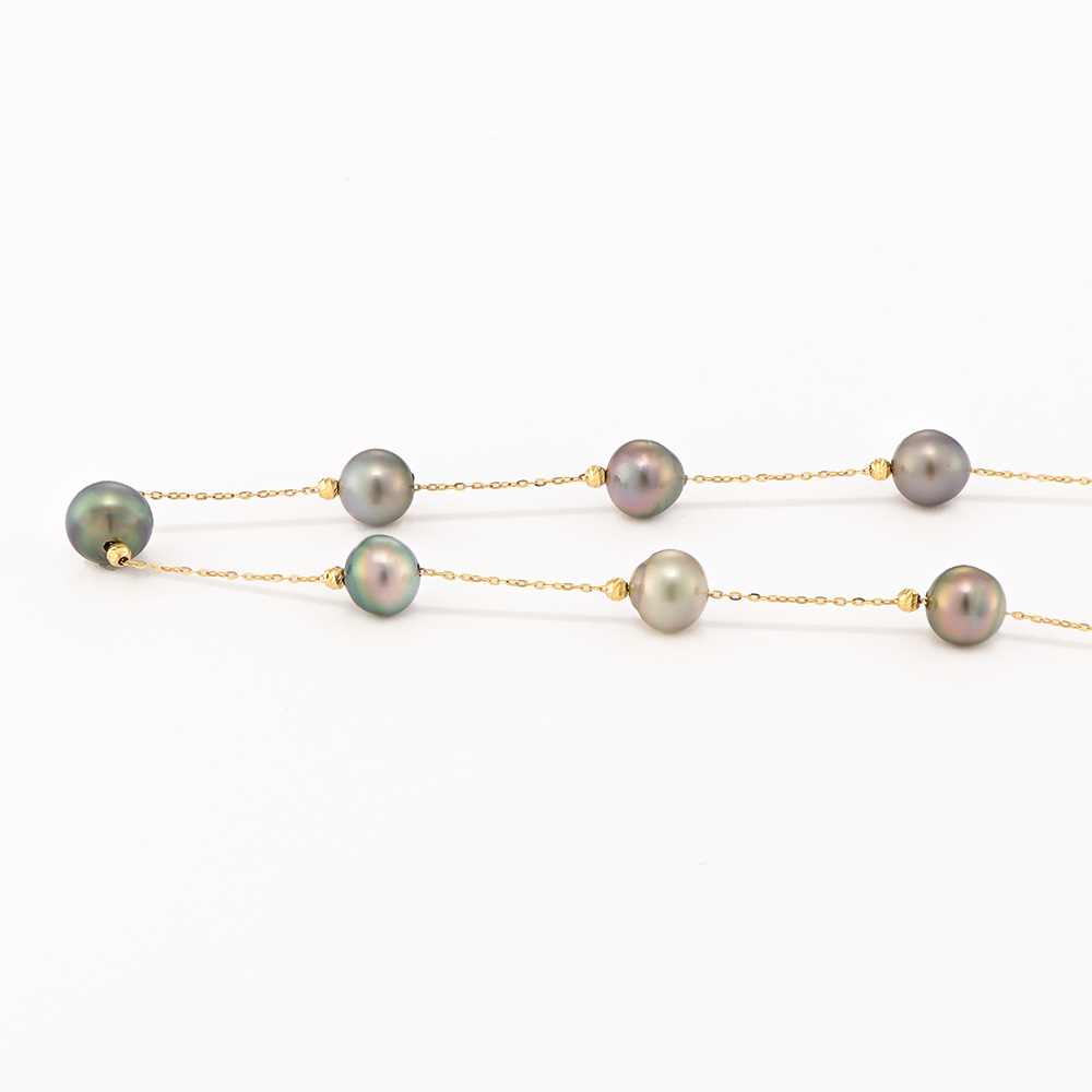 ■素材:黒蝶真珠(約9mm・シルバーブラック系・セミバロック)・K18
