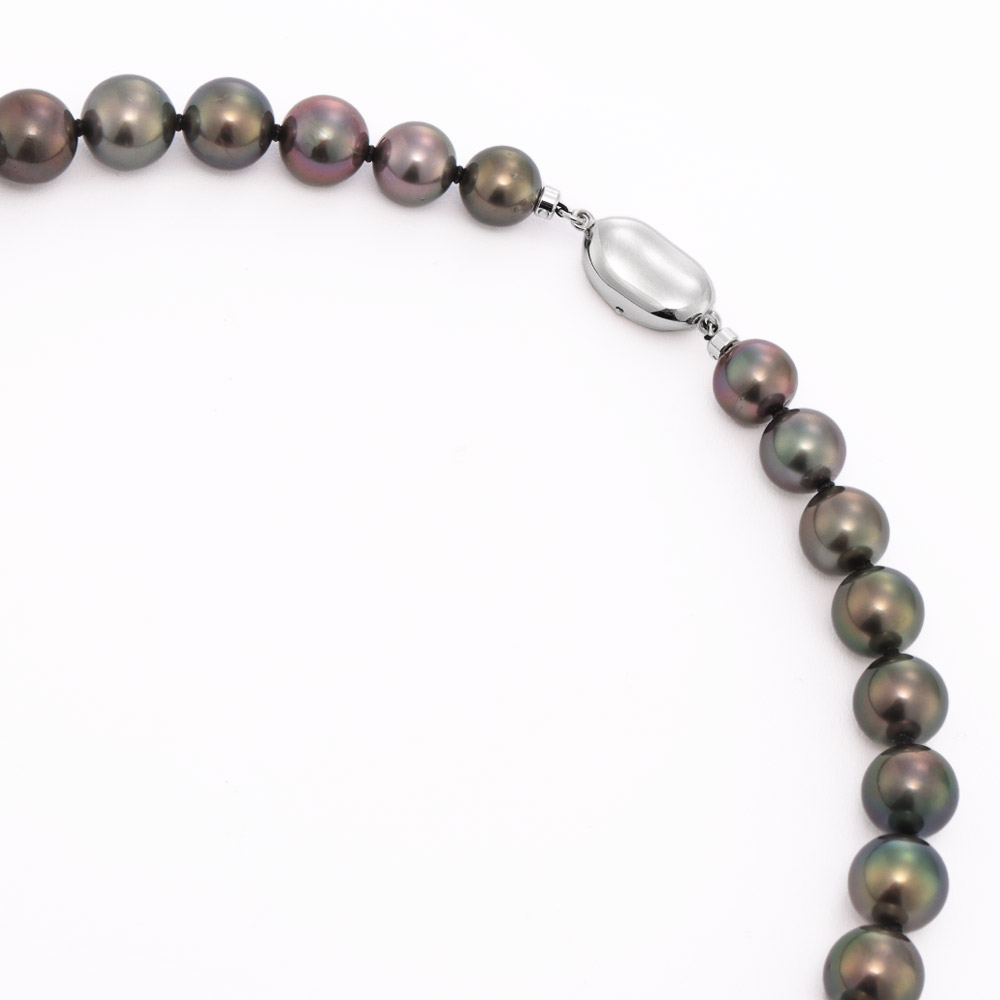 冠婚葬祭はもちろん、デイリーにも活躍するジュエリーとして高い人気を誇るパール。珠のサイズや色、テリによって華やぎ感に差がでるパールは、年齢に応じてグレードアップさせていきたいジュエリーのひとつ。市場では品薄で価格高騰が続く中、今回は「一生もの」にふさわしい威風堂々たるパールを数量限定でご紹介します。 孔雀の羽のごとき虹色の輝きを湛えたピーコックカラーの黒蝶真珠。黒蝶の中でも最高ランクの色と言われ、年々価値が高まっている名品です。商品画像の説明