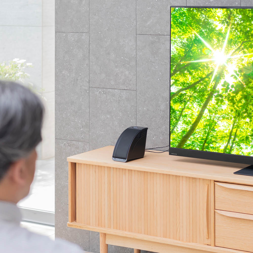 距離が離れた場所でも音がよく届くようになるため、テレビの横に置くだけで部屋のどこにいても音がクリア。ダイニングやキッチンなどテレビの前に集まらなくても快適にテレビを楽しめます。