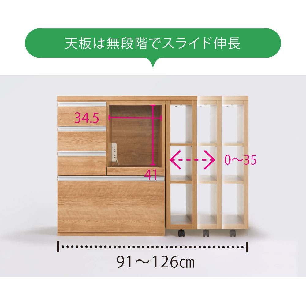 簡単に幅調節可能!スライド伸長式カウンター幅91-126cm 家電タイプ レンジ台 キッチンラック キッチン収納 629511