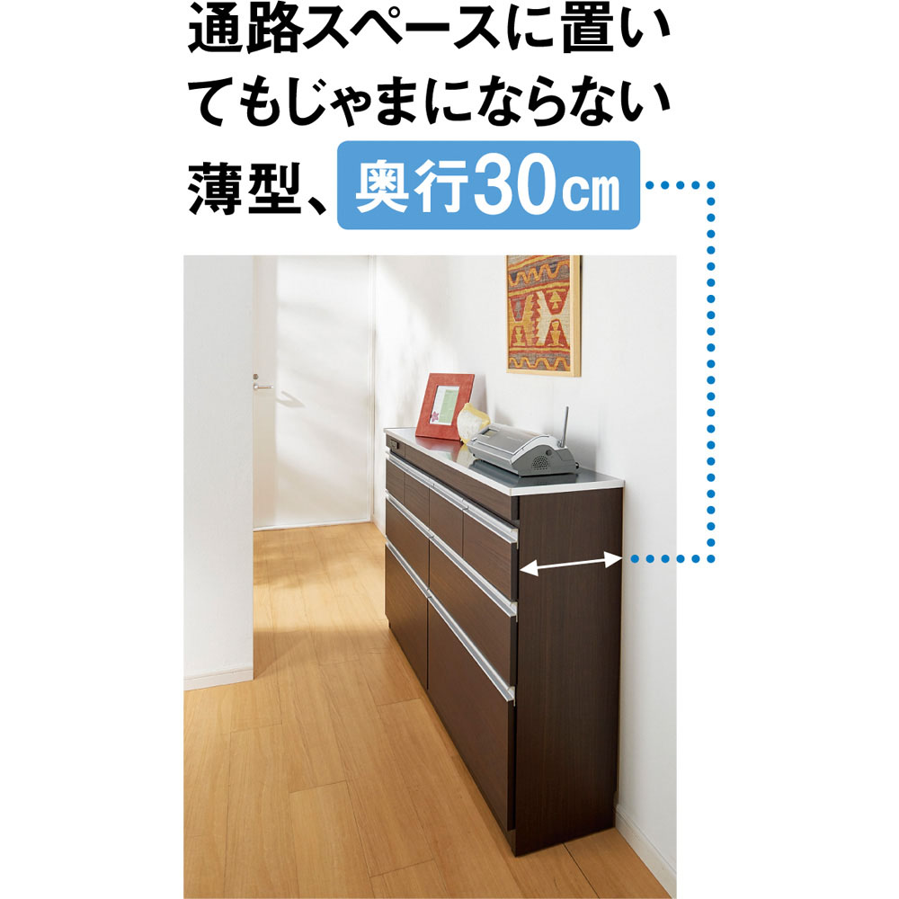 これまで置きたくても置けなかった狭いキッチンや通路に置いても圧迫感がない、今までにない奥行浅型のキッチンカウンター。