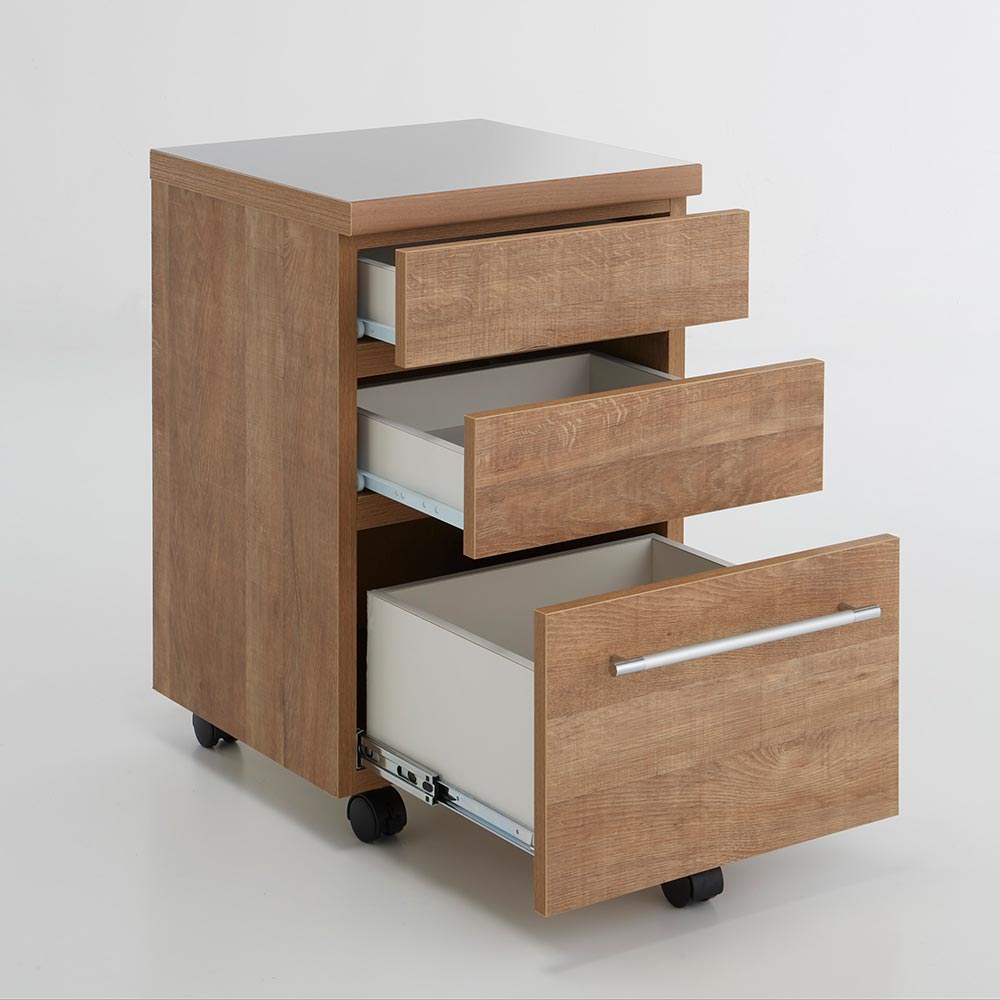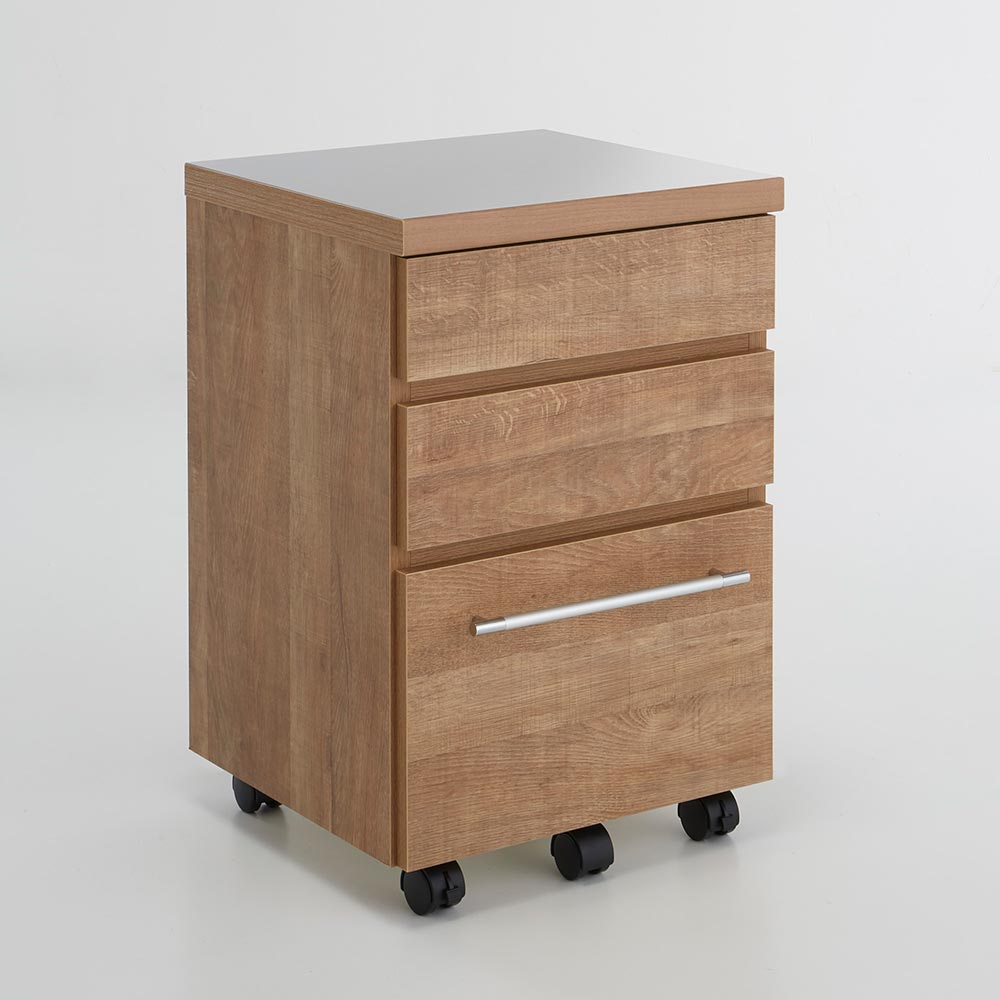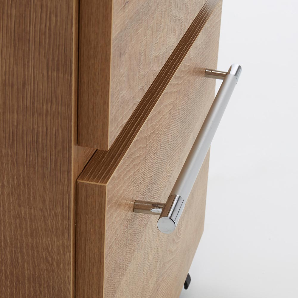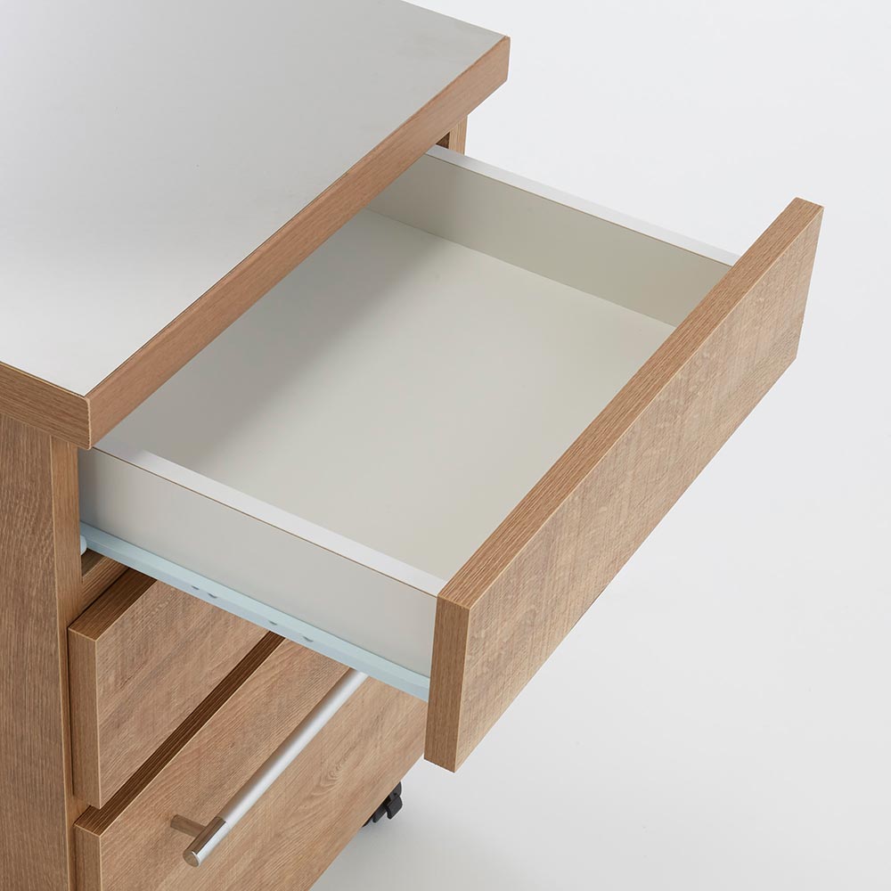 ●浅引き出しと深引き出しを備えたキッチンワゴン。