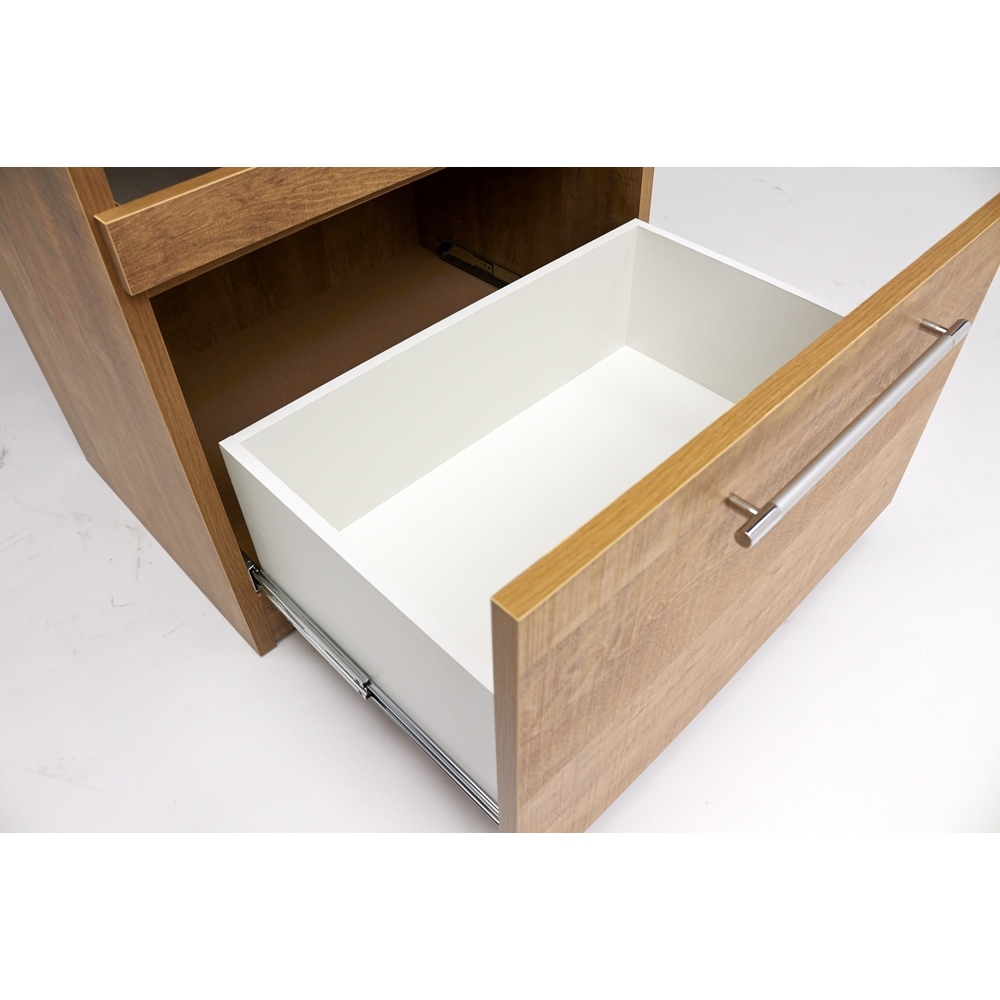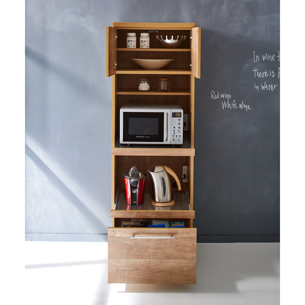 家電収納部の棚板、引き出しはスライドレール式なので収納物の出し入れも楽々。