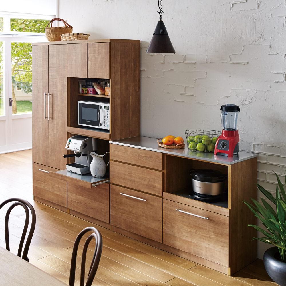 ●炊飯器やコーヒーメーカー、電気ケトルが使いやすいスライドテーブル付き。●ステンレスを使っているので、汚れてもお手入れが簡単です。