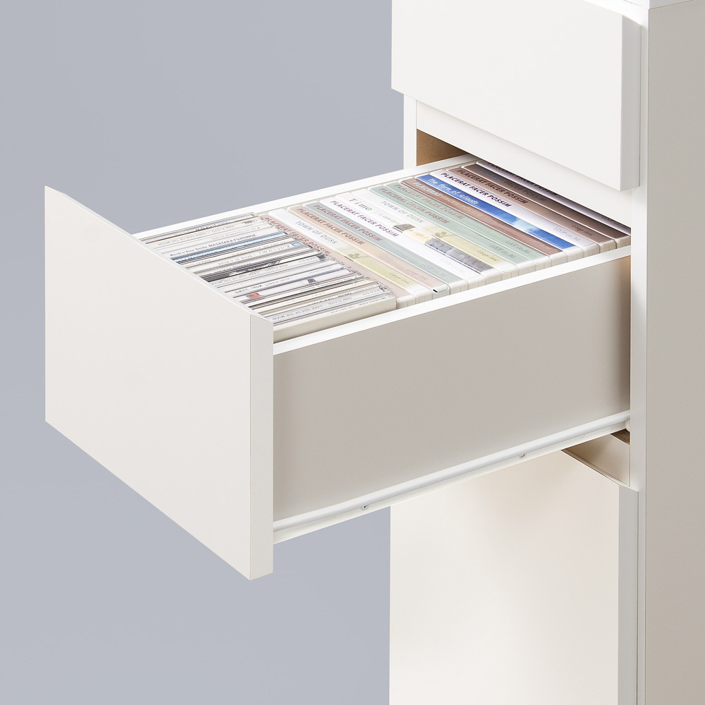 • 中サイズの引出し(2段目)は、ブルーレイやDVD、CDがきれいに収まります。スライドレールで開閉スムーズです。