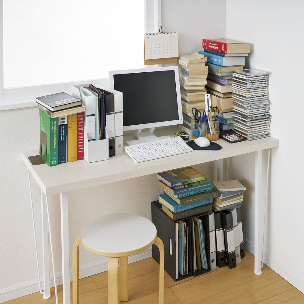 デスク横のわずかなすき間を活かした大量収納!