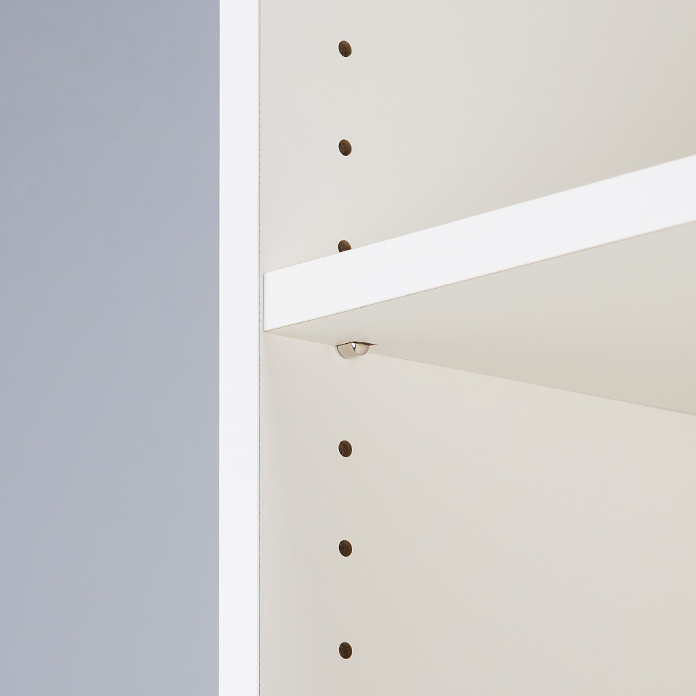棚板は3cm間隔で調整可能で、本や書類など収納物に合わせて効率良く収納出来ます。また、オープン収納部は左右組み替え可能で、置き場所や好みに合わせてお使いいただけます。※写真と可動棚設置用のダボ穴位置が異なりますのでサイズ詳細図をご参照ください。
