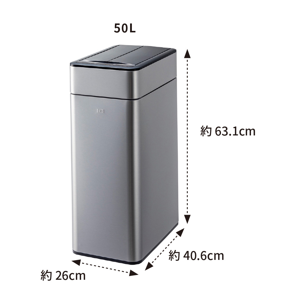 両手がふさがっていてもゴミが捨てられて効率的。高機能センサーは真上のみ感知するので、前を通っただけではフタは開きません。両開きのフタは高さを抑えて開閉できるので、棚やカウンター下にも置けます。18L、35L、50Lの3サイズがあり、生活環境に合わせて選べます。