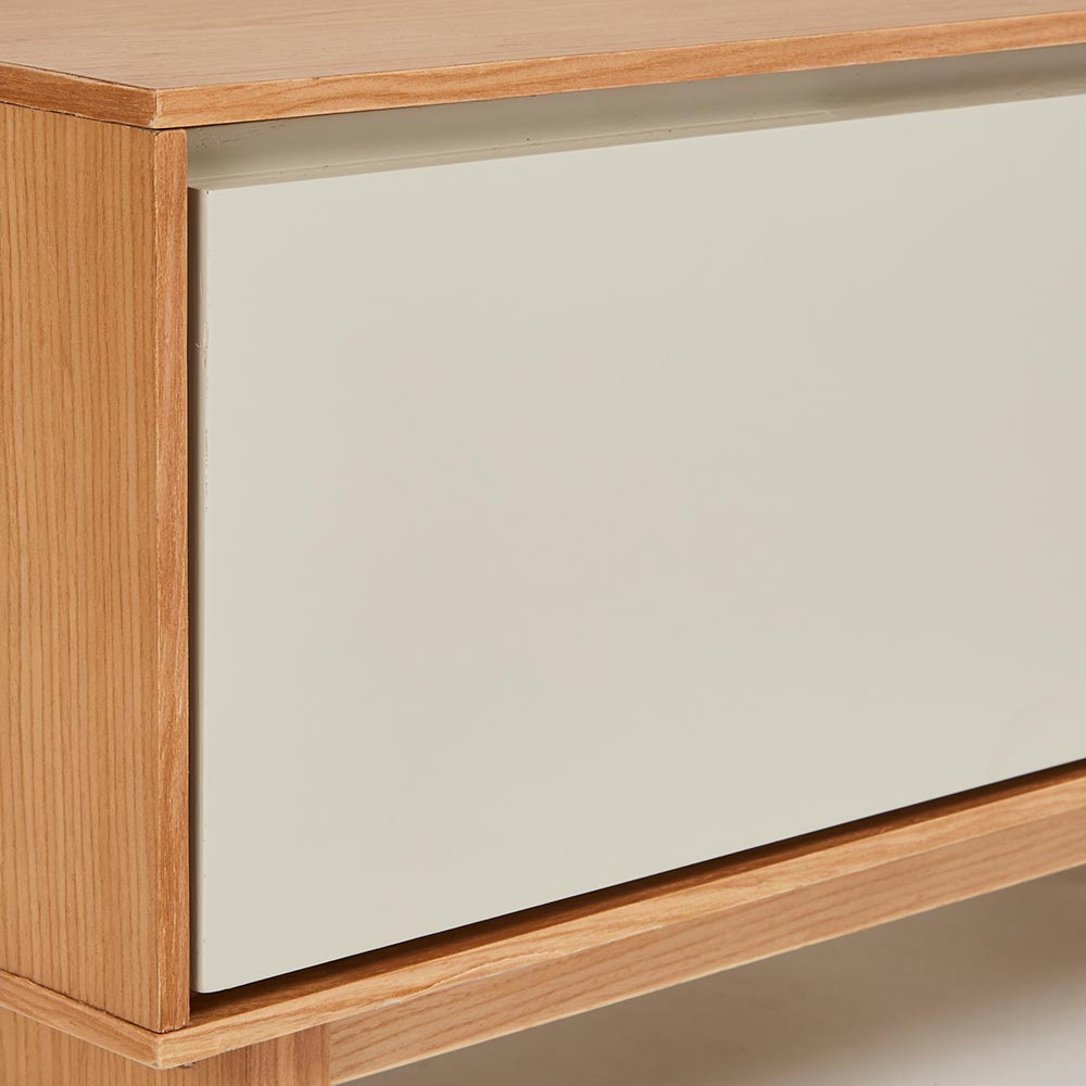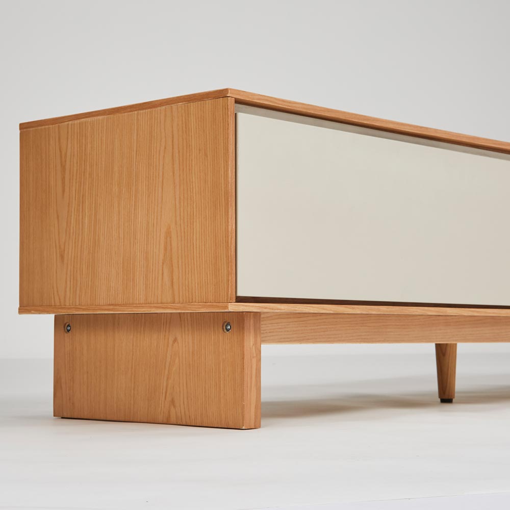 天然の木目がもたらす柔らかな風合いに、落ち着いたグレーの前板を組み合わせたバイカラーデザインが部屋のインテリアのアクセントに。北欧のナチュラルな心地よさと、日本のミニマルな美意識を融合させたジャパンディスタイルのシリーズです。