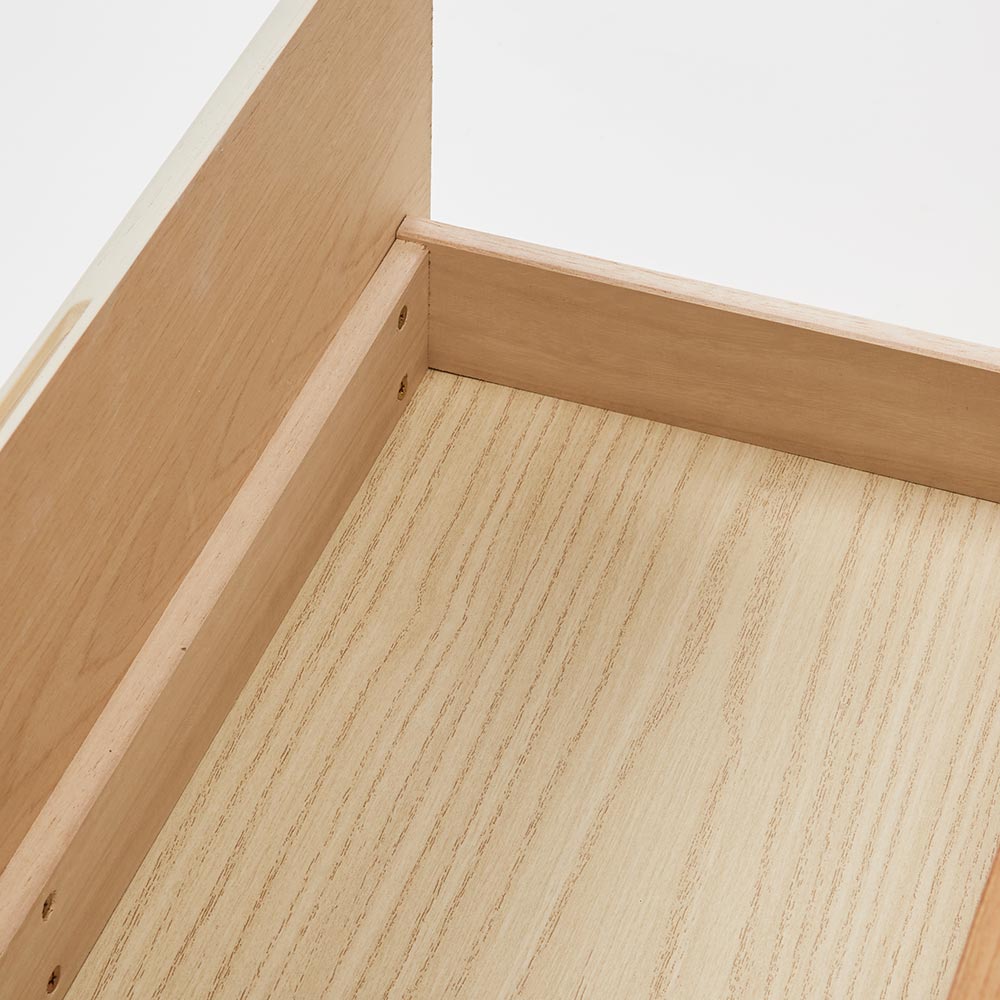 ・引き出しは荷重や歪みに強いロッキング箱組を採用。底抜けや前板外れを防ぎ、長年の使用にも耐える安心の強度を実現しました。