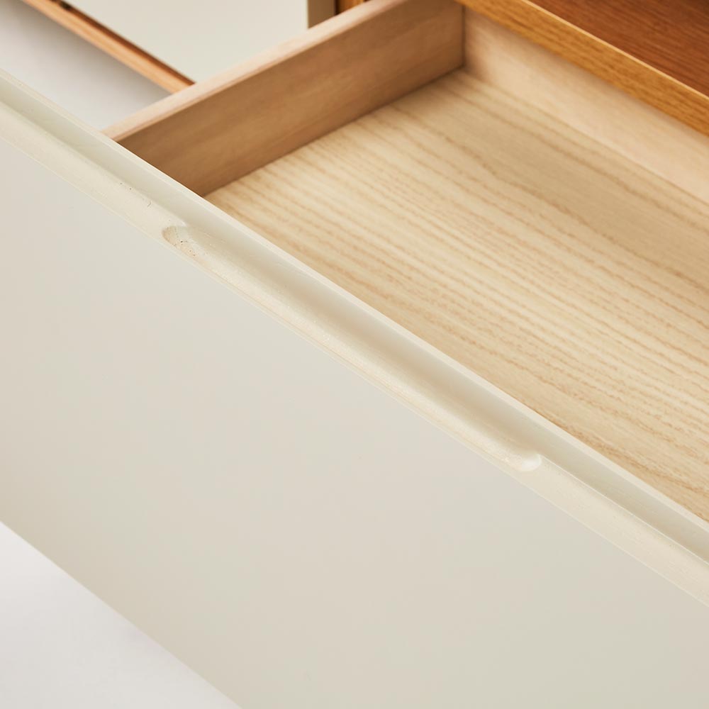 ・引き出しは荷重や歪みに強いロッキング箱組を採用。底抜けや前板外れを防ぎ、長年の使用にも耐える安心の強度を実現しました。