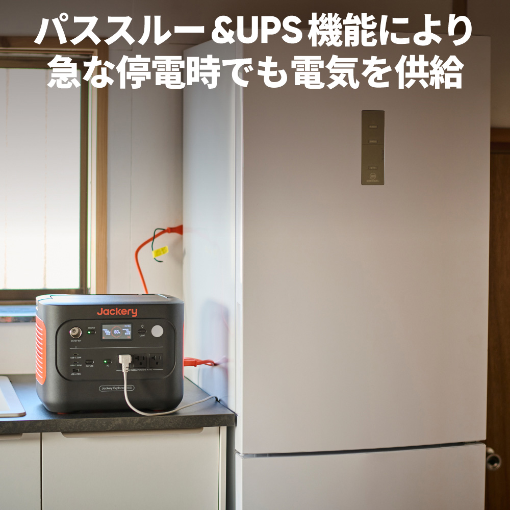 UL1778 認証済みのUPS(< 20 ms)機能搭載、常時接続可能のパススルー機能と併用することで非常用電源として使えます。