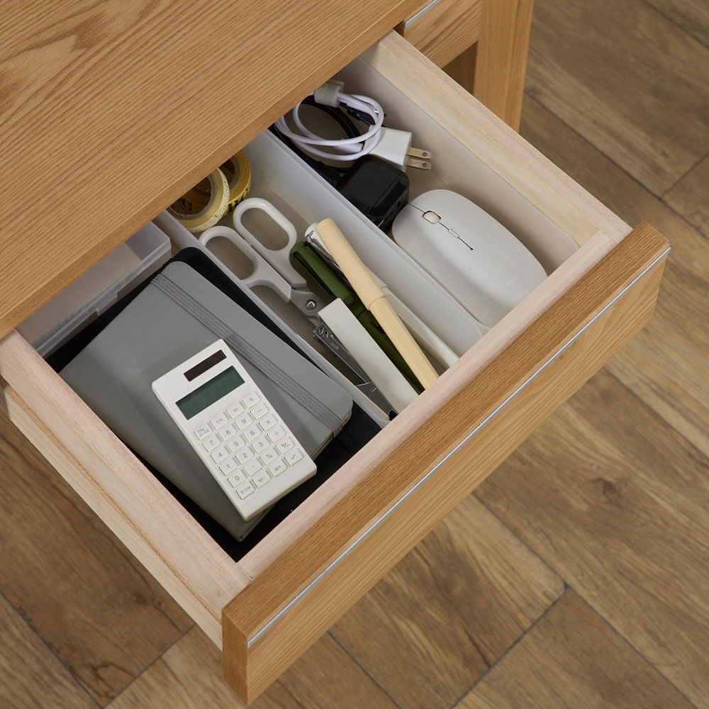 • 文具や充電器、PC周辺機器などを収納できる引き出し付き。