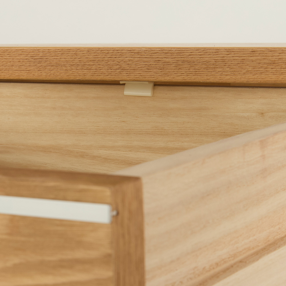 • 箱組構造と呼ばれる頑強な構造で組まれた引き出しは、永く使える耐久性があります。