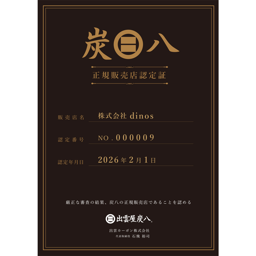 dinosは「出雲屋炭八」の正規販売認定店舗です。ぜひ認定店舗であるdinosでお買い求めください。