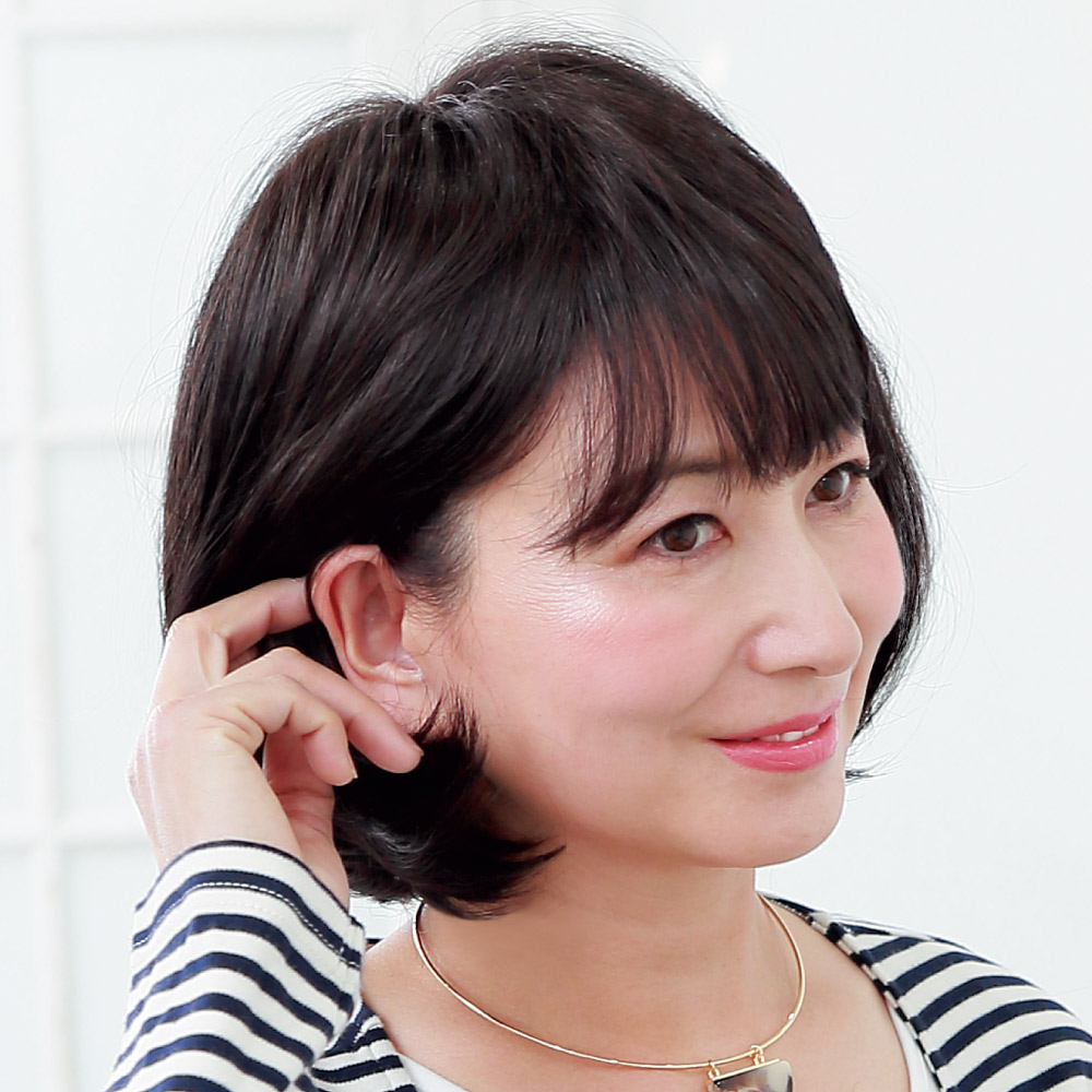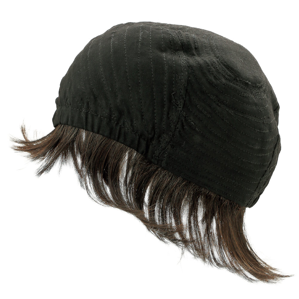 まるで帽子のようにサッとかぶれる新感覚のウィッグが初登場。内側が伸縮性のある帽子形状なので、着脱が簡単で、締め付け感なく頭にしっかりフィット。留め具が付いていないので頭皮にストレスがかかりません。アジャスター付きでサイズ調整もでき、長時間の着用にもおすすめです。うつむき姿勢でも安心の地毛のように見える自然やつむじは、老舗ウィッグメーカーならでは。丸みのあるふんわりボブスタイル。おすすめポイント