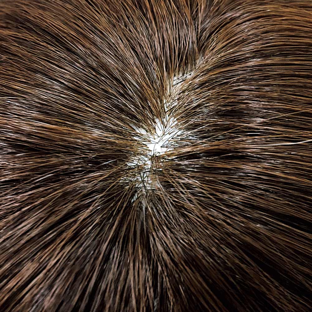 角度を気にせず着用できます。こだわりの自然なつむじで、うつむき姿勢でも安心。