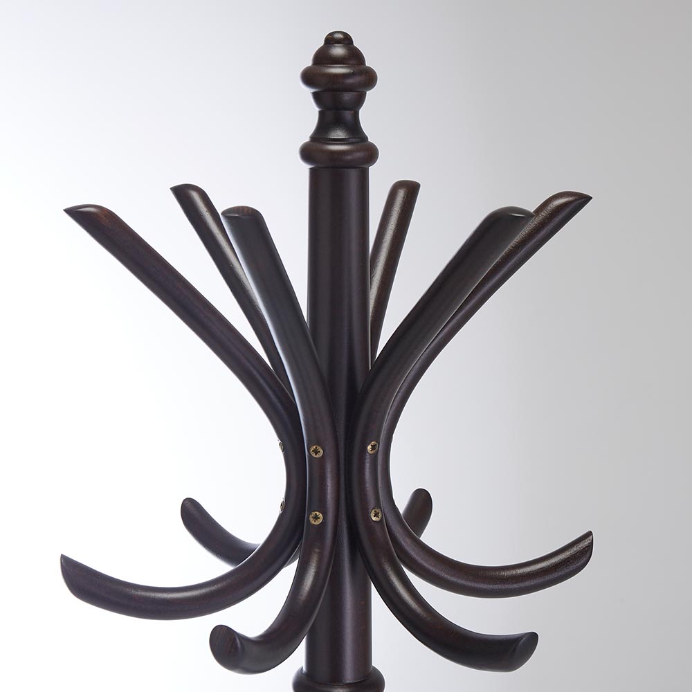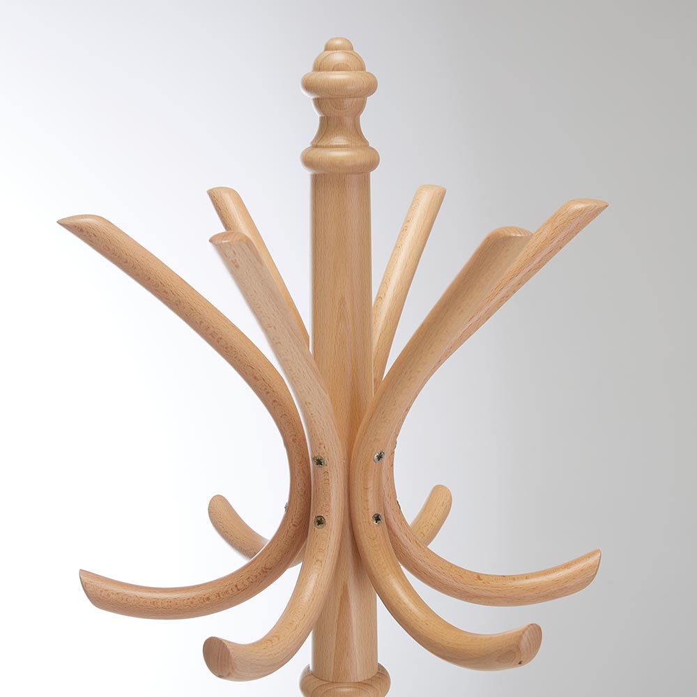 トーネット社ならではのこのコートスタンドは、様々な曲げ加工が組み合わさって作られています。コートハンガーだけではなく、チェアも含めたその他の商品の中でも普遍的な存在であり、様々なインテリア・空間に完璧にマッチします。このコートスタンドの製造には、トーネット社が厳選した極小の部品が使用されています。ヨーロッパカフェスタイルの曲げ木技法仕上げ。世界中のカフェやレストランなどで愛用されているロングライフデザインのコートハンガーです。世界中から愛さ続ける曲げ木細工の老舗「TON(トン)社」