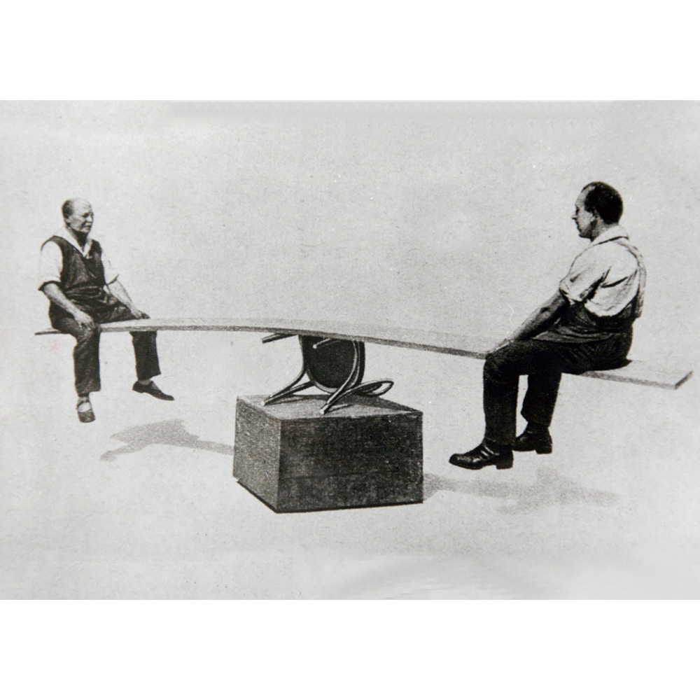 1900年代の広告に掲載された、曲げ木チェアの丈夫さを証明する写真。
