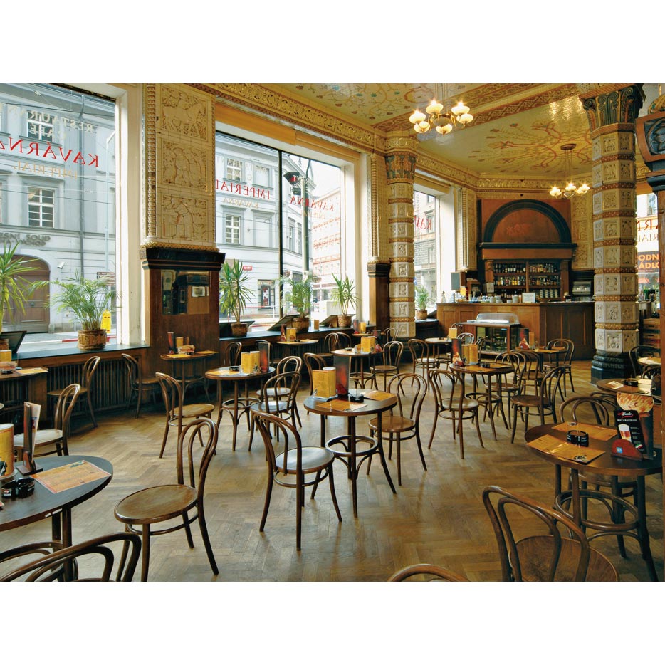 チェコ・プラハのKAVARNAIMPERIAL(カフェ・インペリアル)。TON社の曲げ木チェアは、ヨーロッパのカフェやレストランで昔も今も使われています。