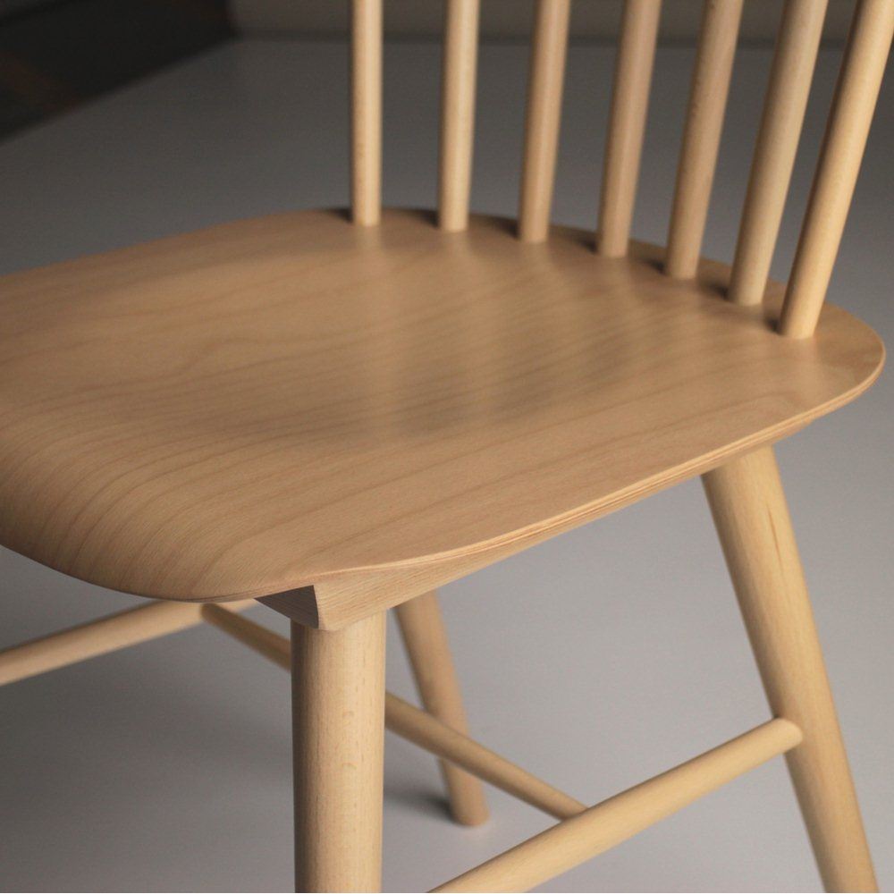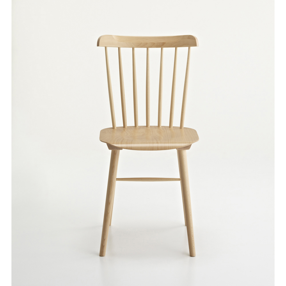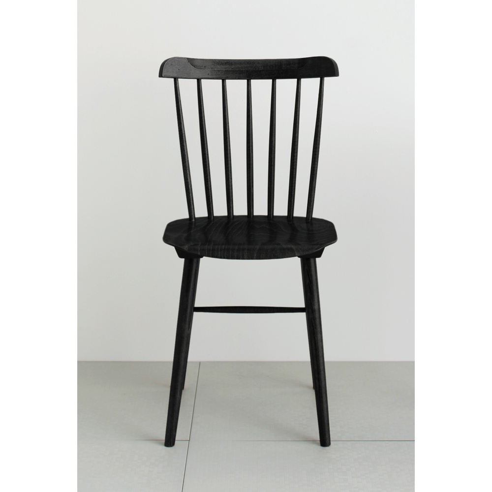 その歴史は16世紀の挽物椅子まで遡るといわれ、現代機能主義デザインの源流ともいわれるウィンザーチェア。TON社では、厚い座板や細い背棒など伝統のスタイルは忠実に継承しながら、座面下部のテーパー加工や湾曲した背あて板などを独自の工夫を凝らしています。