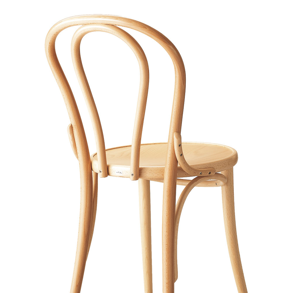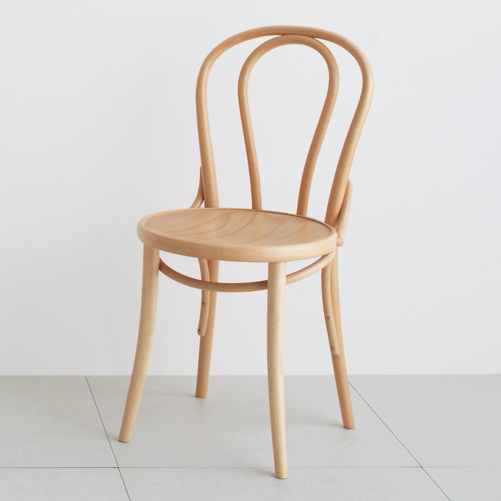 天然の無垢材を緩やかに曲げて描く優美なライン。後世のデザインにも多大な影響を与え、ヨーロッパの椅子の歴史を語る上でも重要なTONの曲げ木チェア。9つの部材だけのシンプルな構造で、曲げ木椅子の魅力である軽さを実現しています。