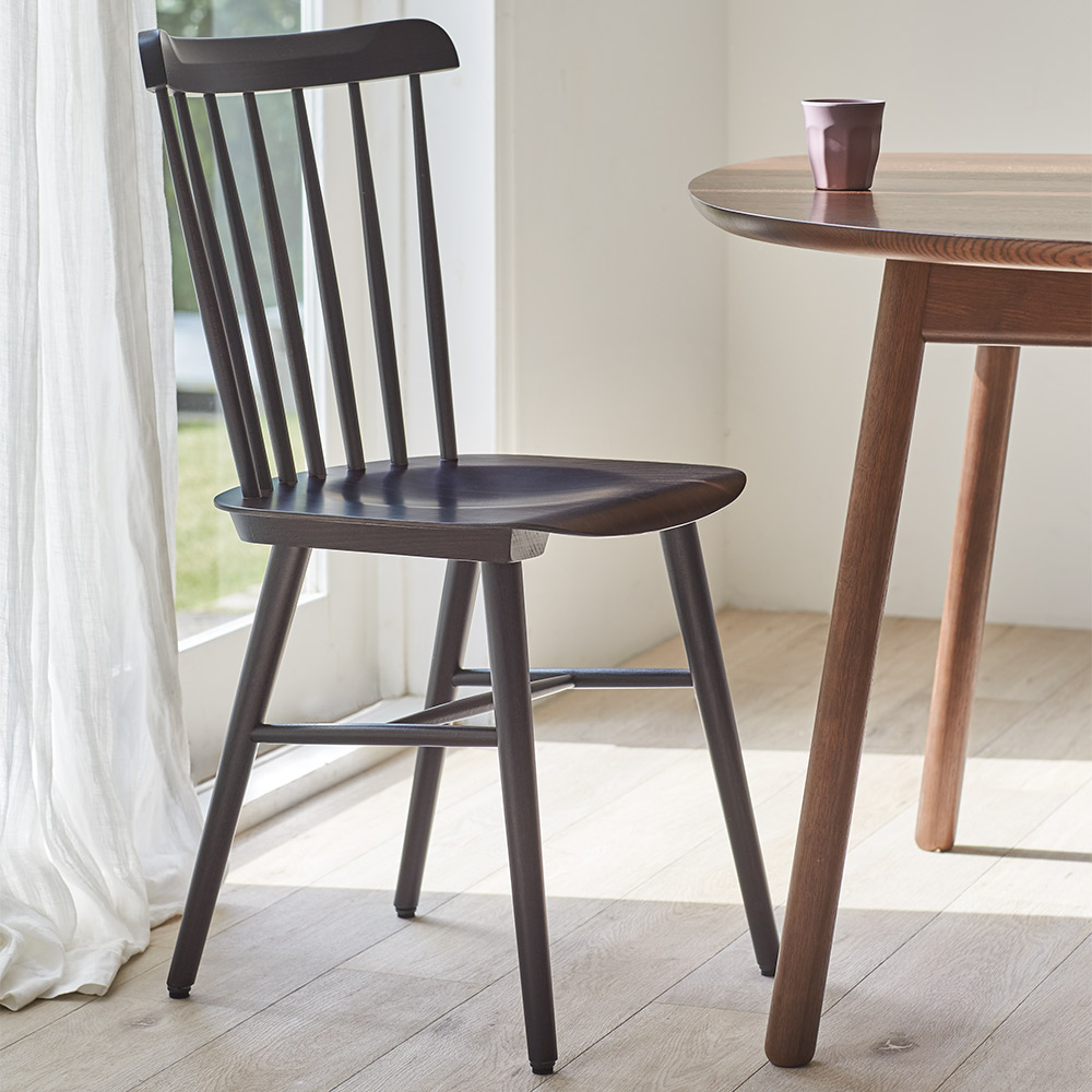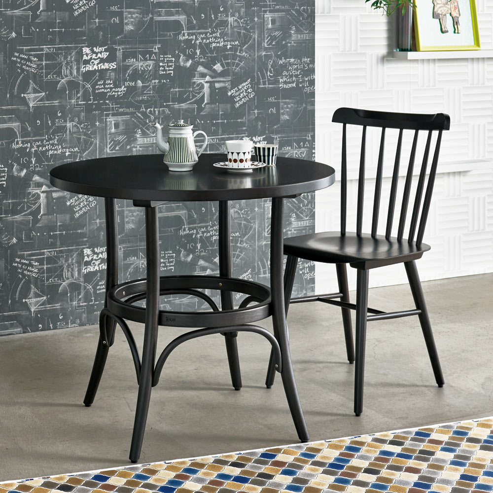 その歴史は16世紀の挽物椅子まで遡るといわれ、現代機能主義デザインの源流ともいわれるウィンザーチェア。TON社では、厚い座板や細い背棒など伝統のスタイルは忠実に継承しながら、座面下部のテーパー加工や湾曲した背あて板などを独自の工夫を凝らしています。ハウススタイリングは、TON(トン)の正規販売店です