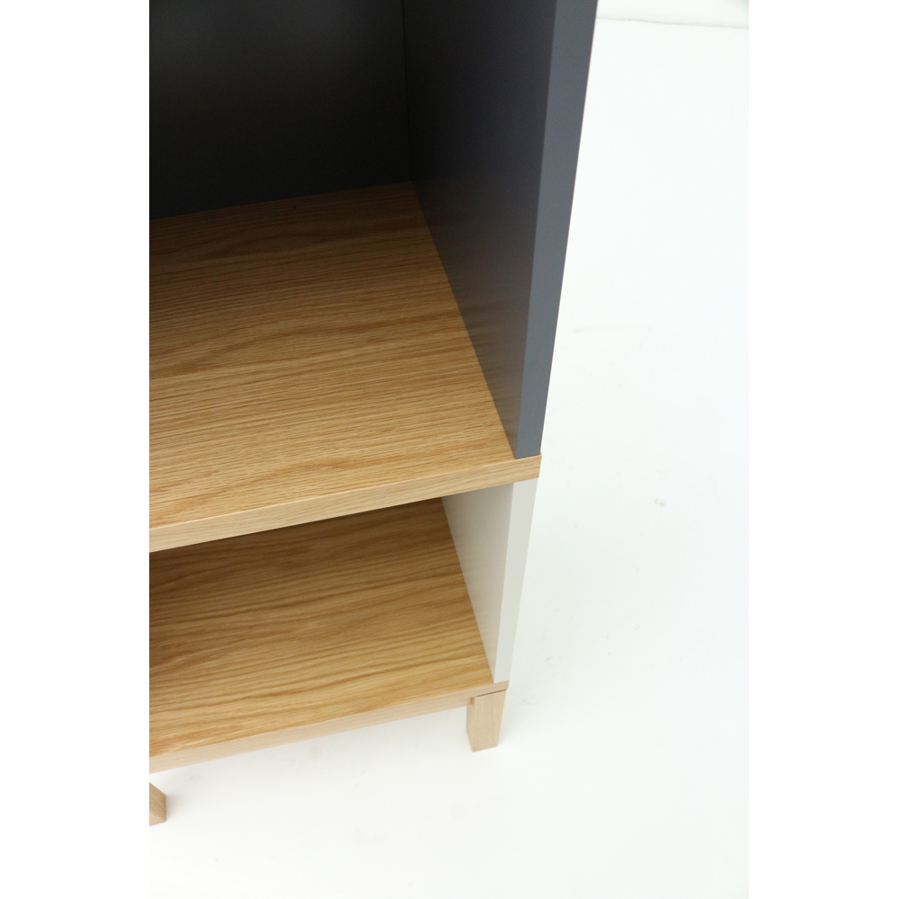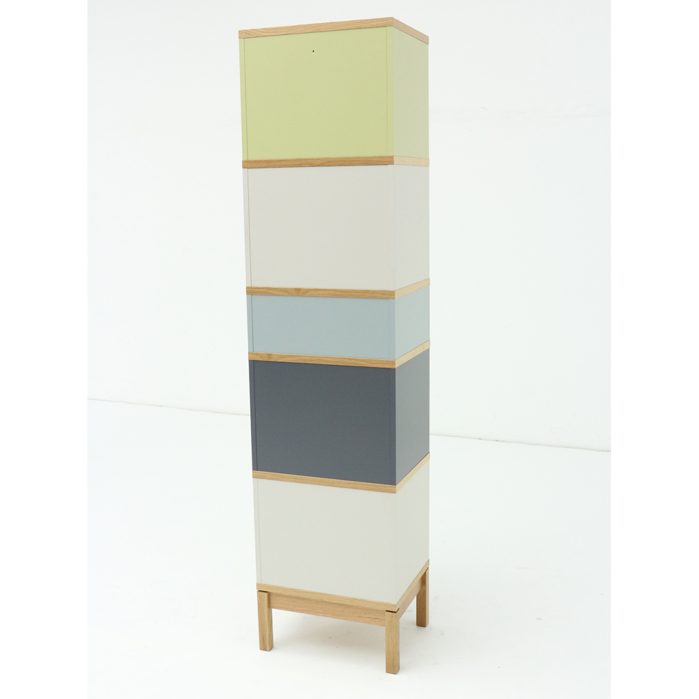 ●お部屋のどこに置いても目を惹くチェストシリーズは、オークの木目とカラーの組み合わせが新鮮。