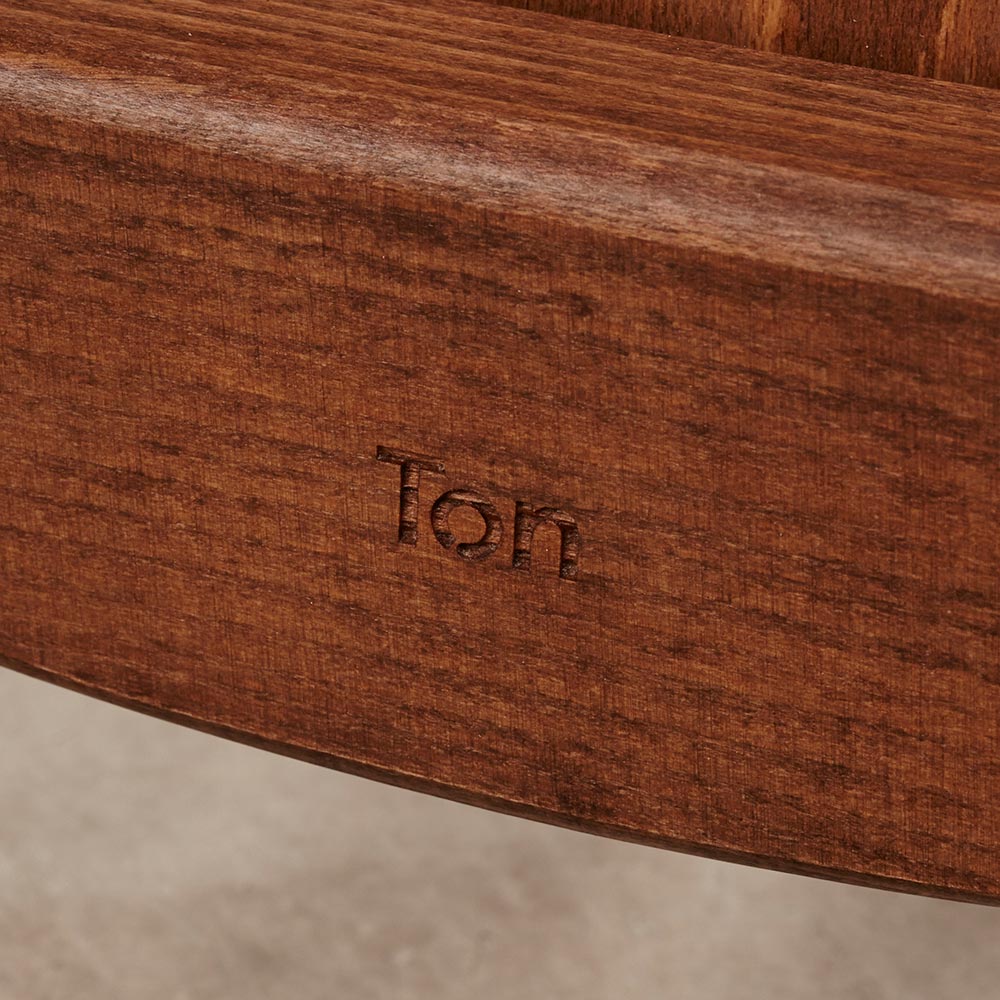 創業160年を迎えるにあたり、Tonのロゴが新しくなりました。中央の「o」は、Tonの革新的な方法で曲げ加工された木材をモチーフに、持続可能性、完璧さ、そしてTonの椅子やテーブルを愛用する家族の輪を象徴しています。(商品の刻印は、在庫に応じて順次切り替えられます)