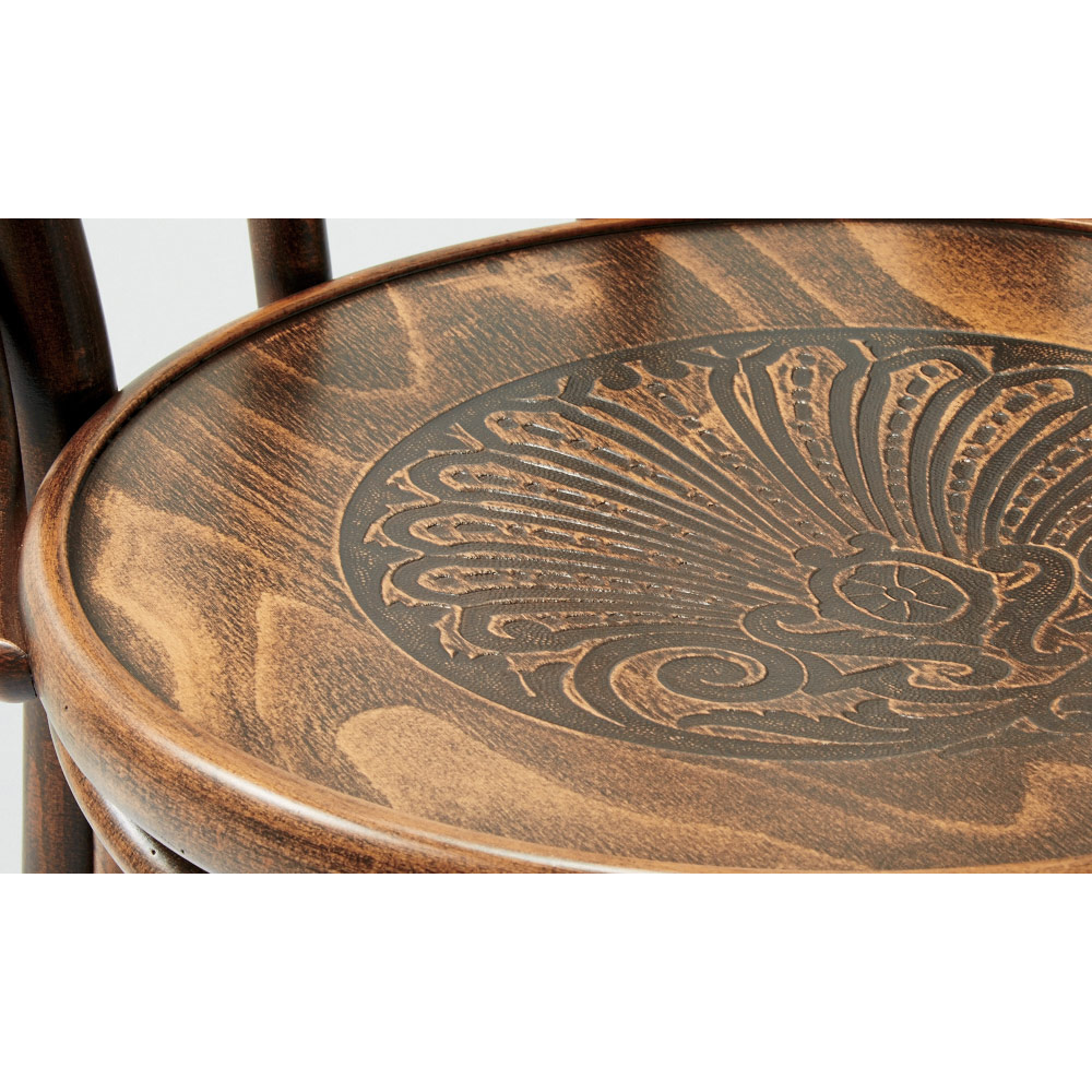 アンティーク風塗装仕上げと座面の彫刻 長年使い込んだような味わい深い風合いのアンティーク風塗装は、世界中からTON社に最も多く注文があるフィニッシュ。