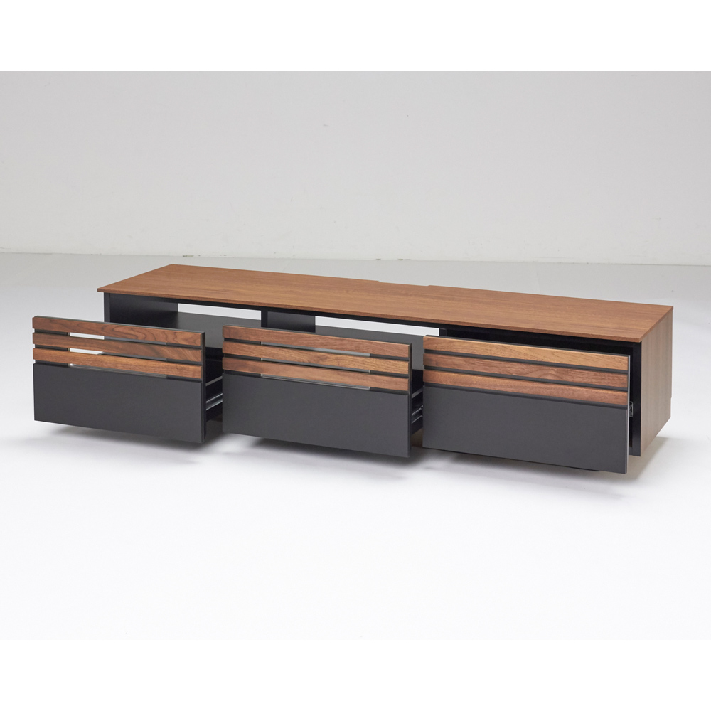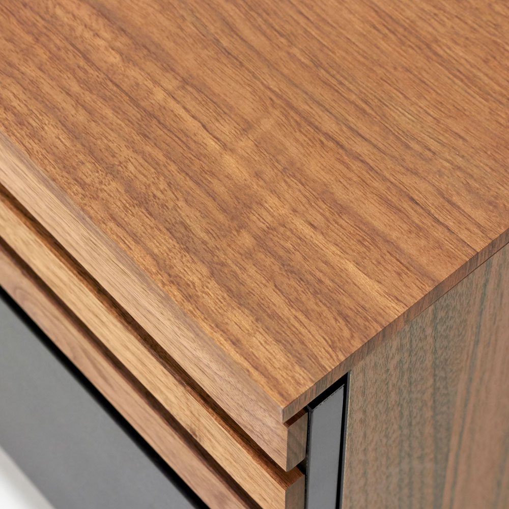 引き出し前面に高級感あるウォルナット無垢材を採用。