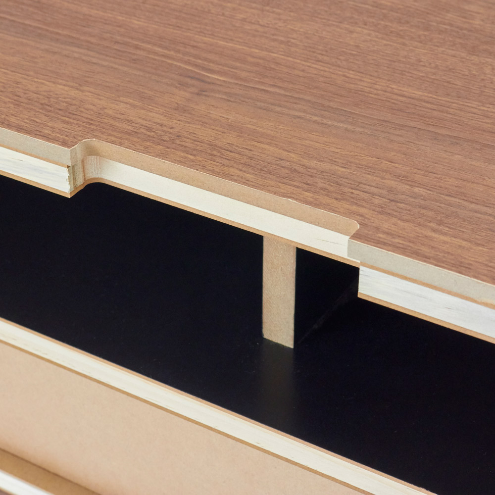 天板はウォルナットの木目柄をリアルに再現した表面材を使用しています。