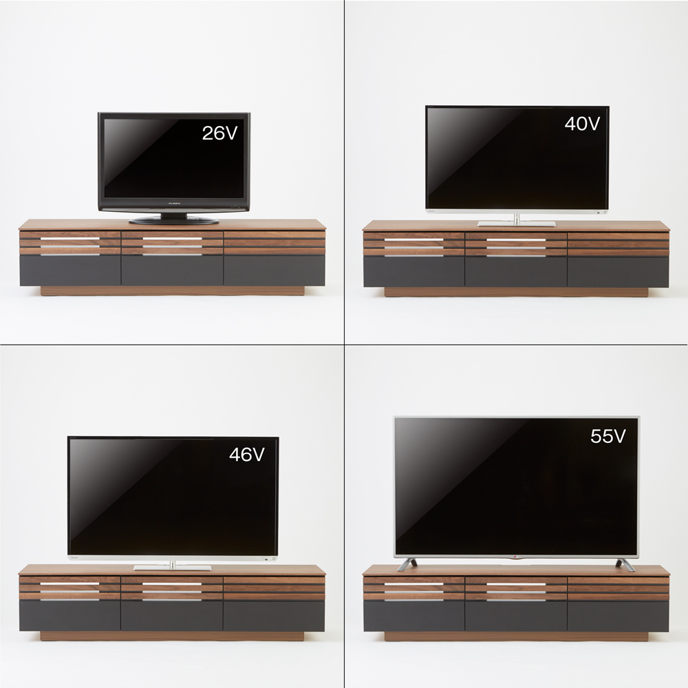 テレビ台とテレビのバランス参考。※テレビメーカーによって同じインチ数でもサイズがことなります。ご使用のテレビサイズをご確認ください。