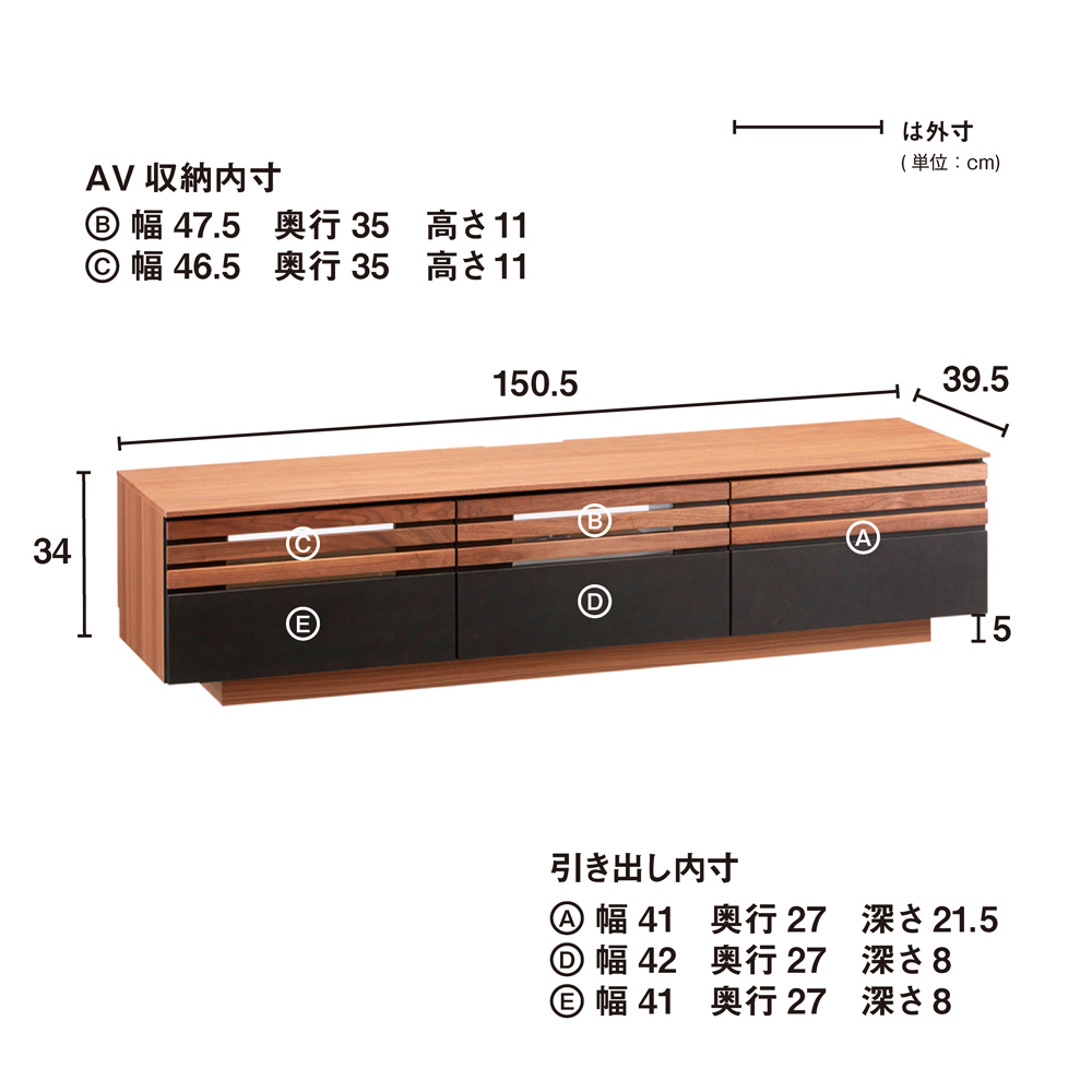 ■サイズ:幅150.5cm奥行39.5cm高さ34cm