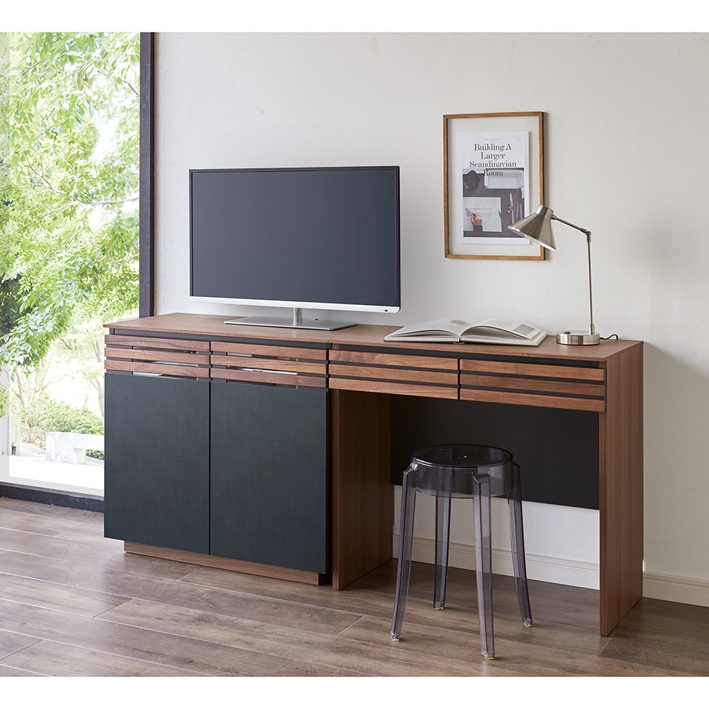 • 使用イメージ ウォルナットの無垢材と、ブラックレザー調の素材の組み合わせが魅力。