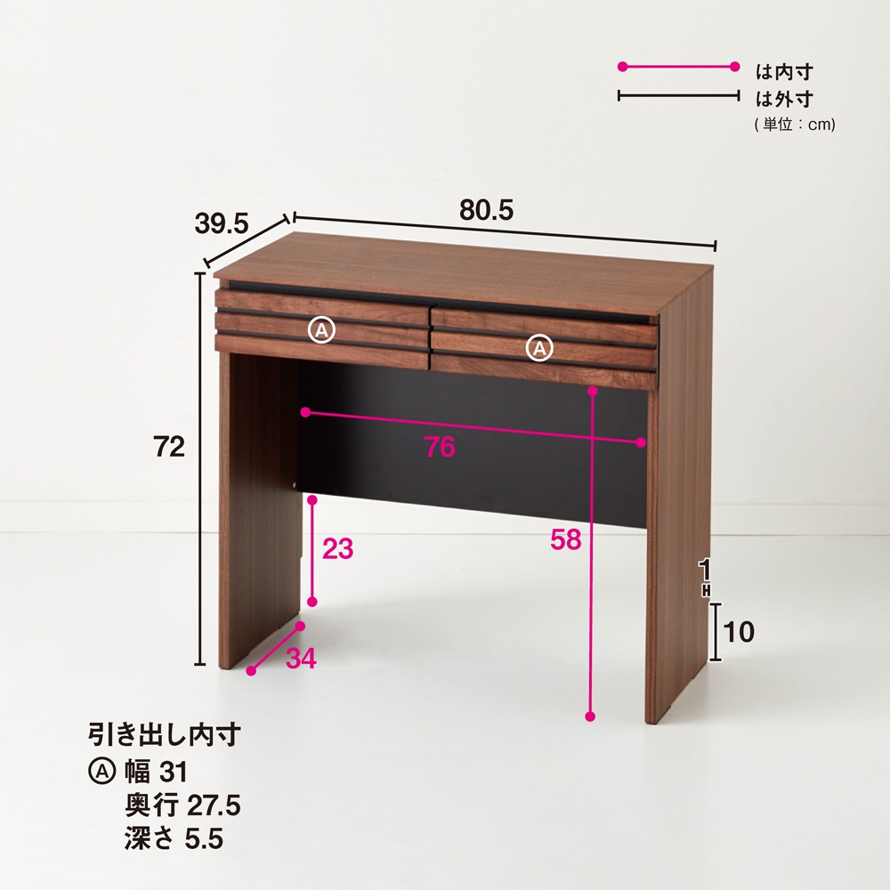 ■サイズ:幅80.5cm奥行39.5cm高さ72cm、天板耐荷重約20kg